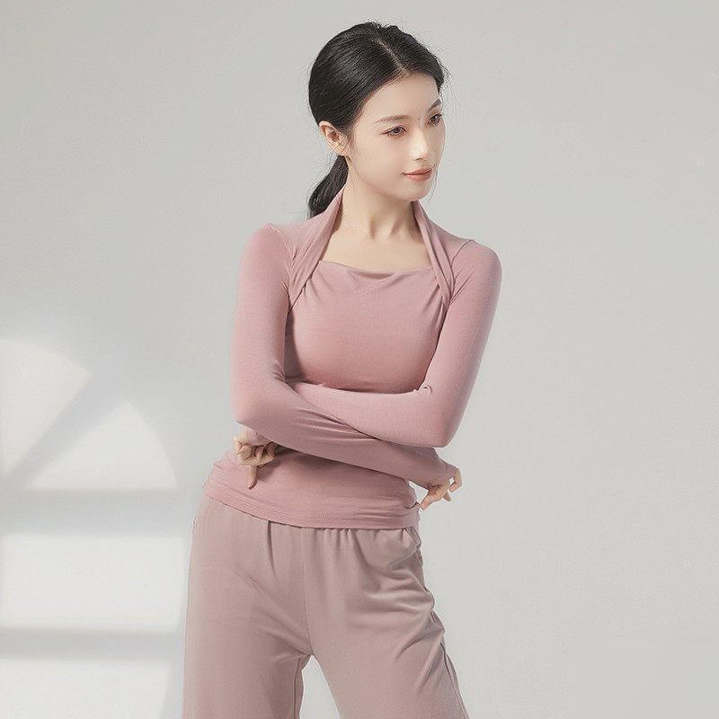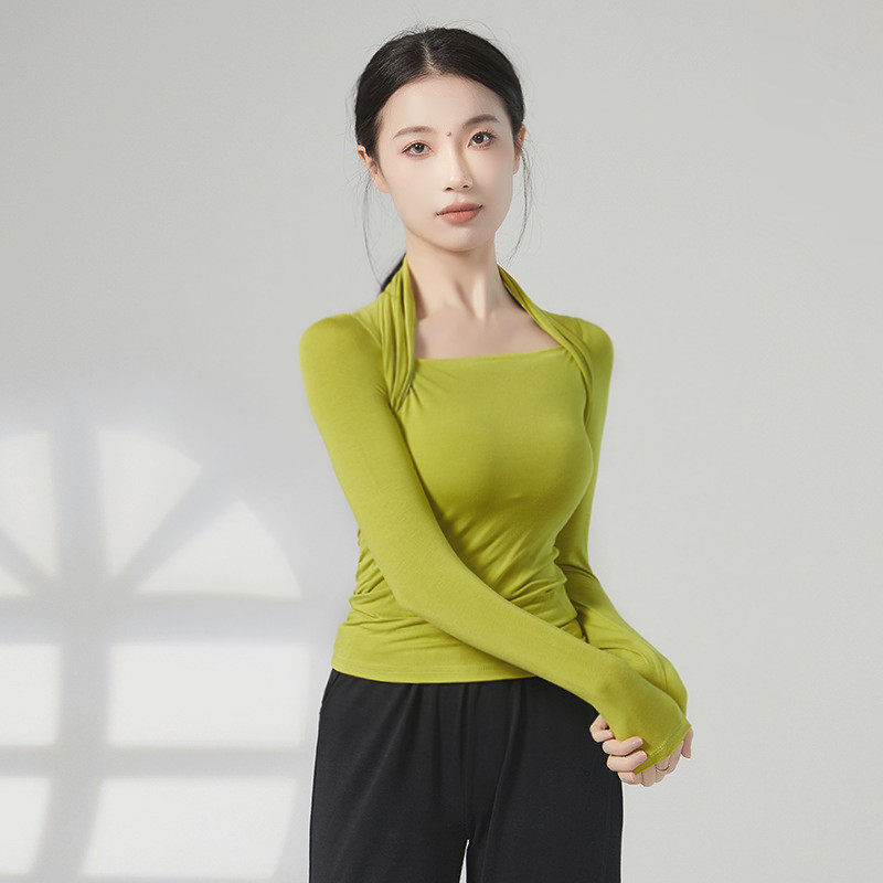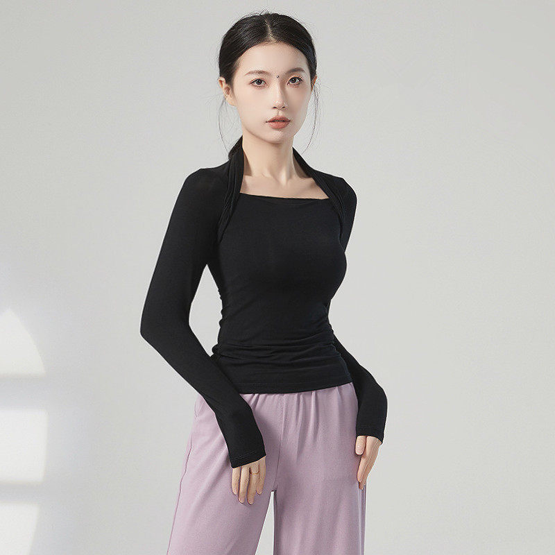 黑色莫代尔长袖芭蕾舞形体服拉丁舞现代舞蹈服装成人练功服上衣女