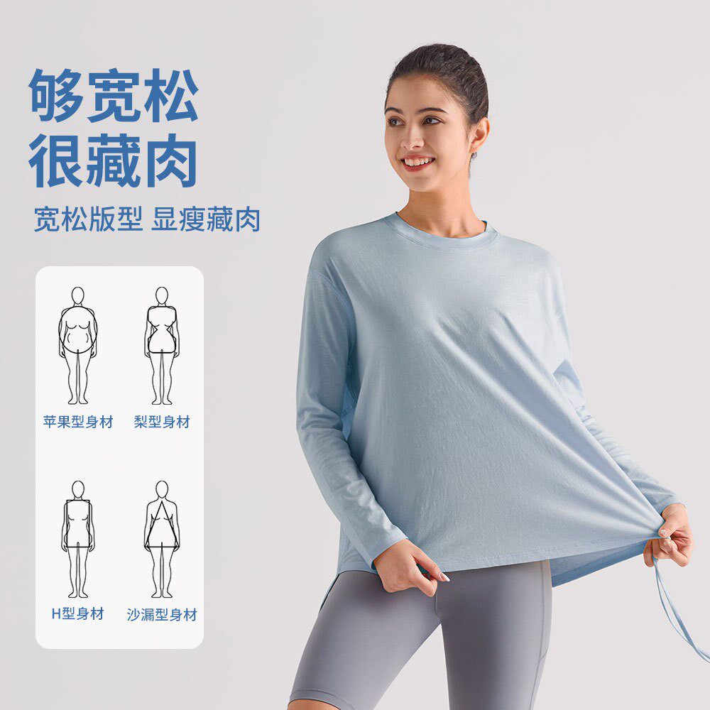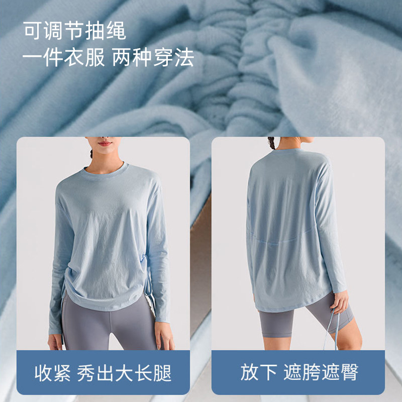 春夏瑜伽长袖罩衫女透气速干运动上衣宽松抽绳健身运动遮屁股长款
