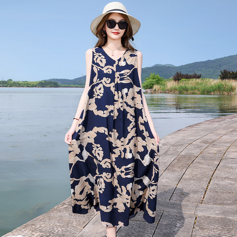 夏季人造棉连衣裙女长款时尚洋气家居服睡衣大码高级感棉绸睡裙