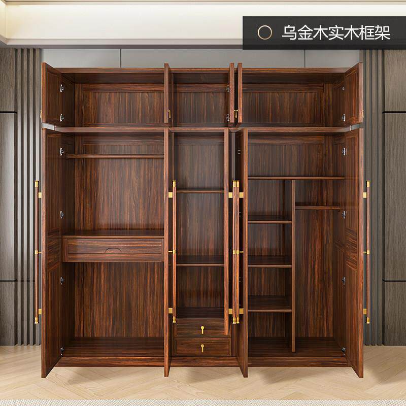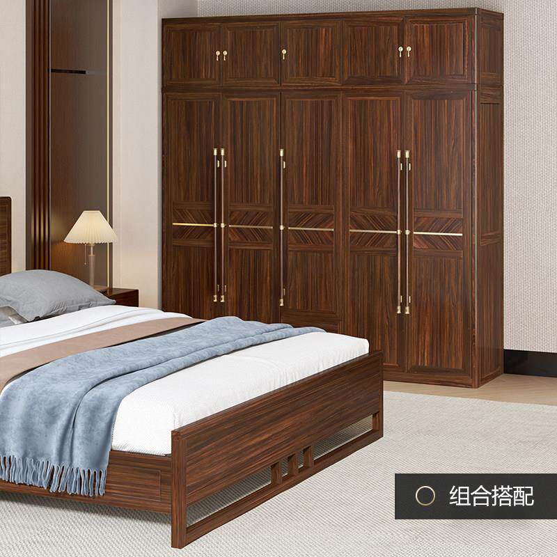 新中式实木衣柜乌金木三门四门五门带顶柜储物大衣柜卧室全屋定制
