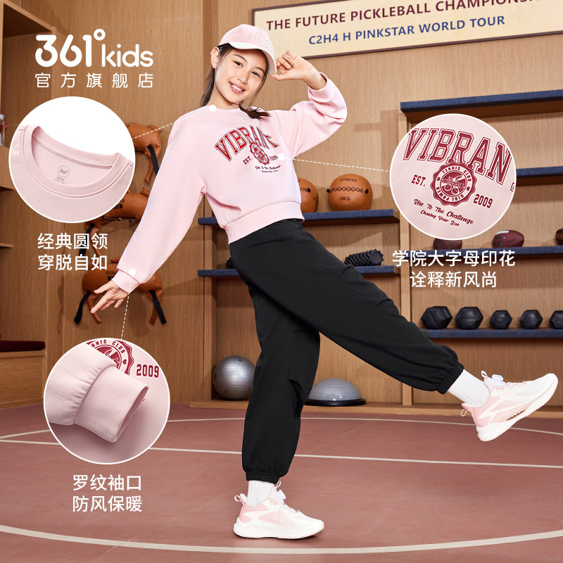 361童装女童休闲套头卫衣短款2026春季新款中大童上衣学院风长袖