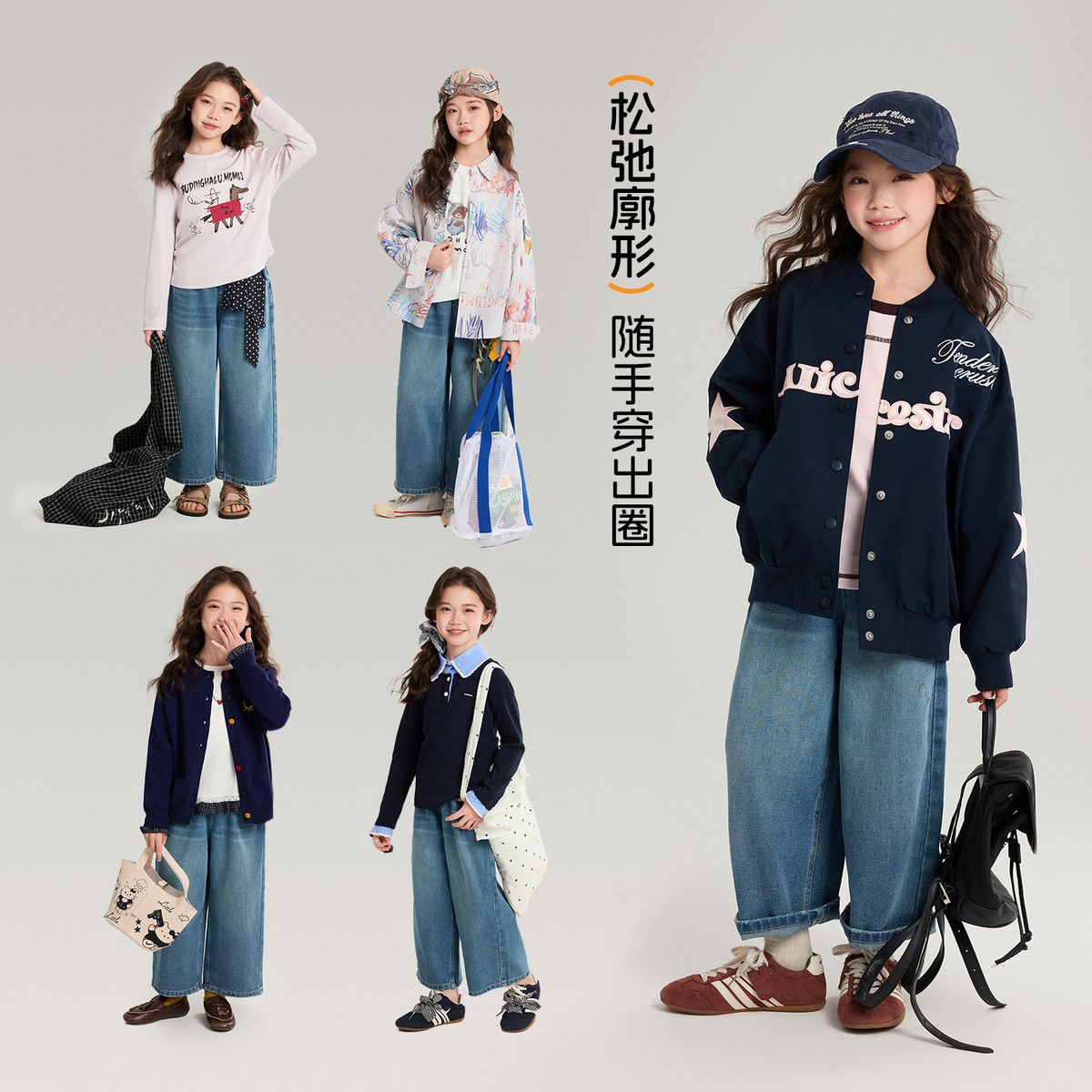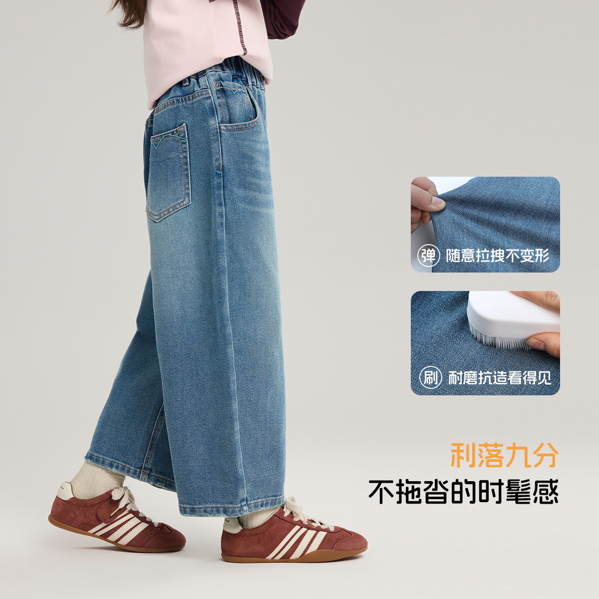 布丁哈鲁春装女童童装裤子2026春季新款儿童洋气百搭九分牛仔裤