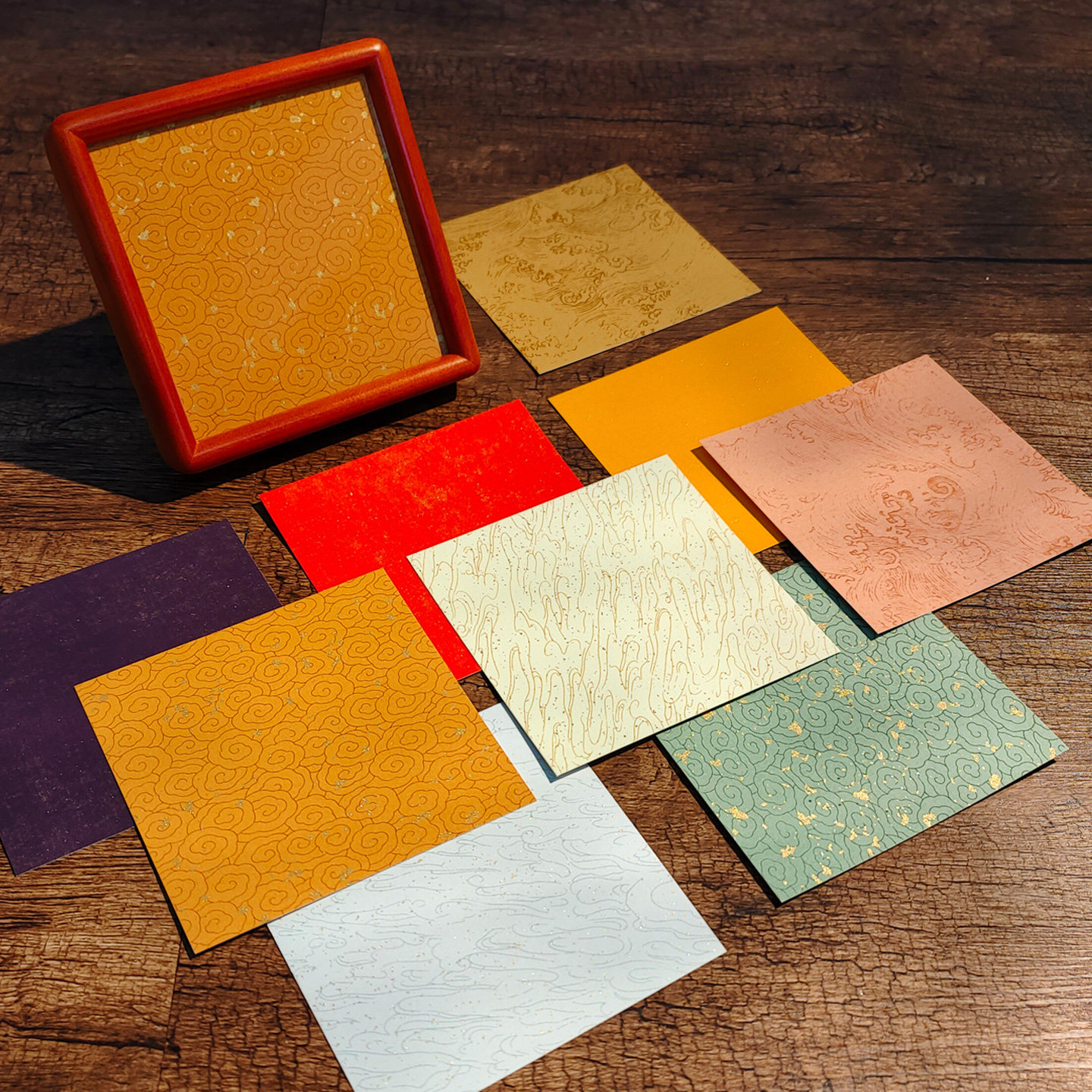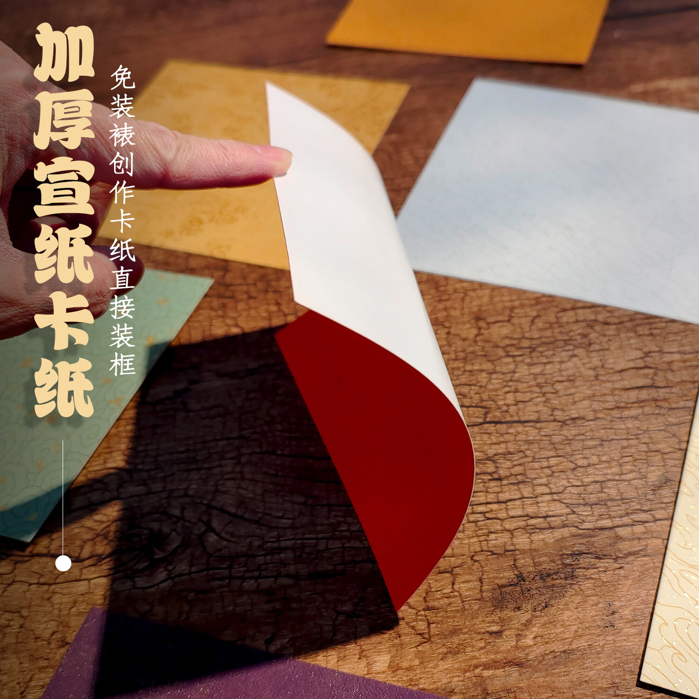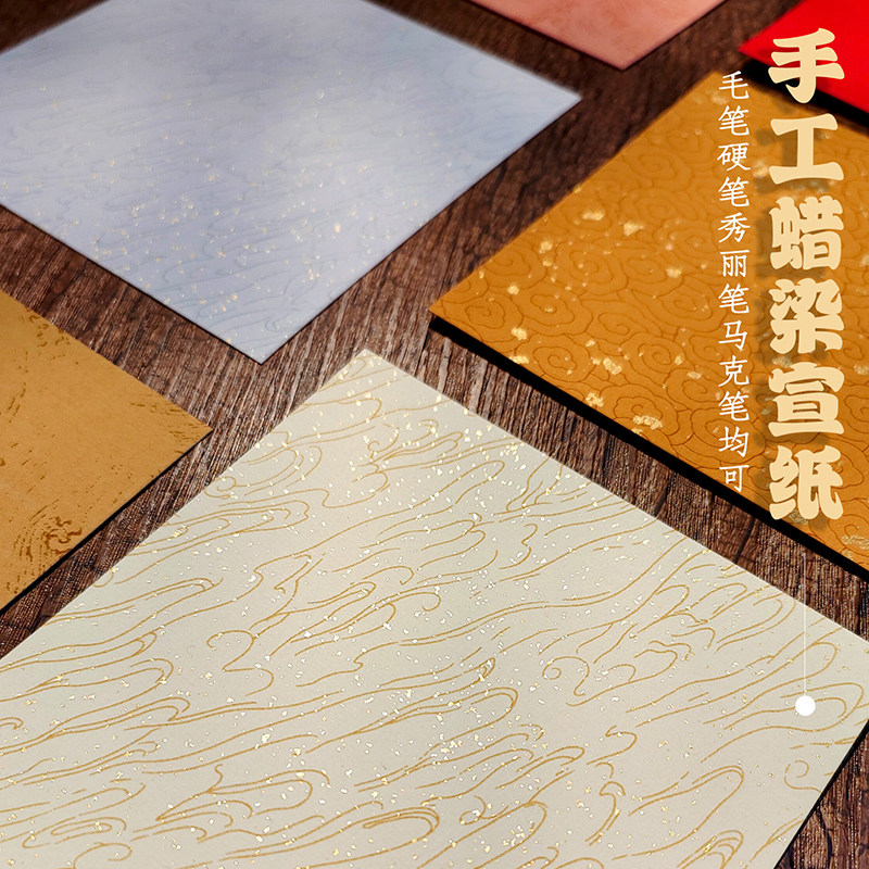15cm宣纸小卡纸蜡染宣卡纸6寸正方形摆台专用毛笔字书法文创作品纸300克软卡仿古祥云随心配书法墙装饰小福卡
