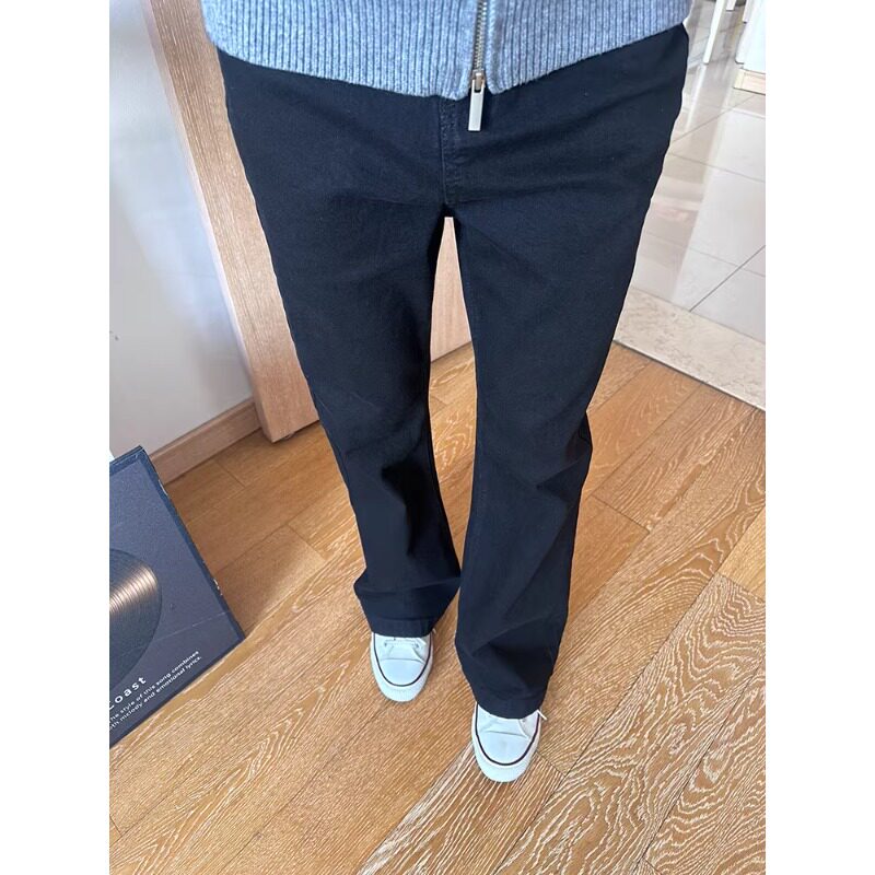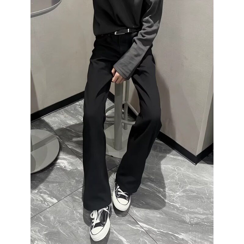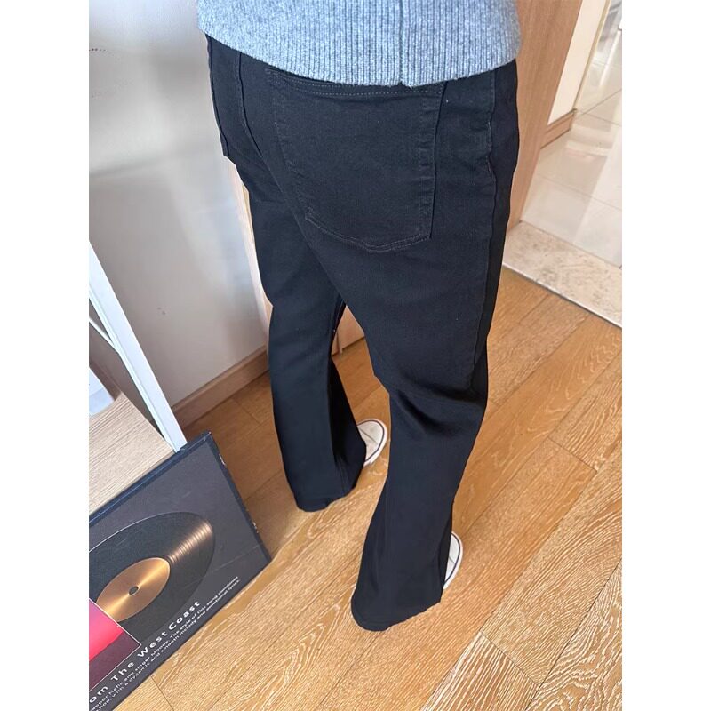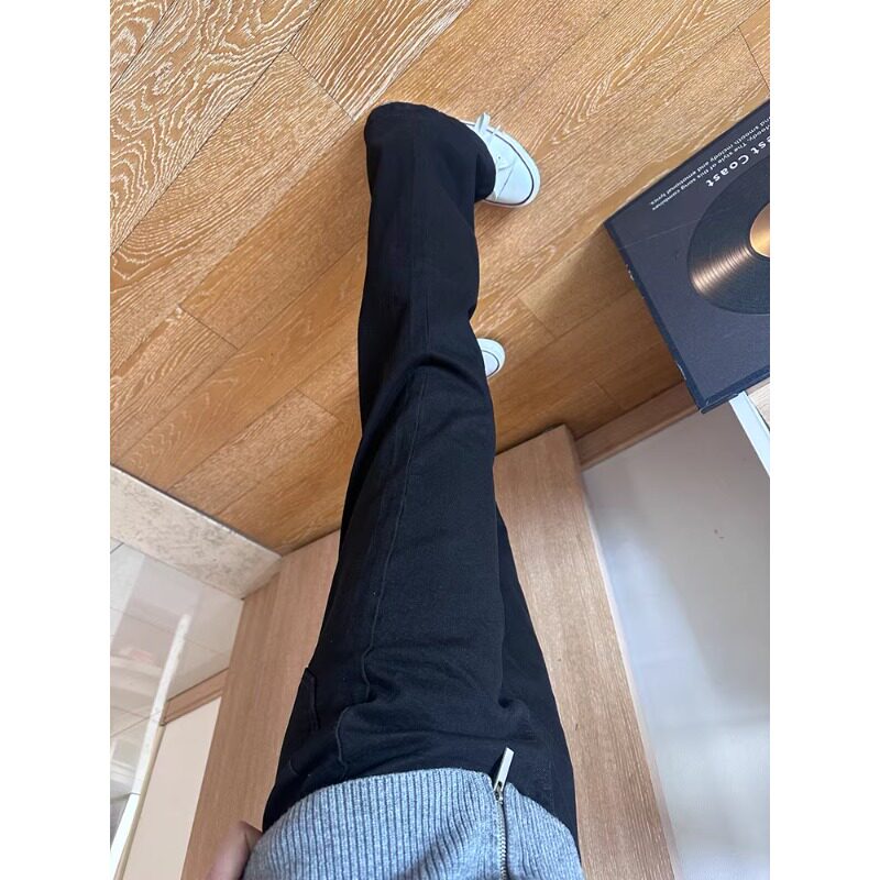 黑色弯刀牛仔裤男款美式高街vibe裤子cleanfit修身显瘦直筒微喇裤