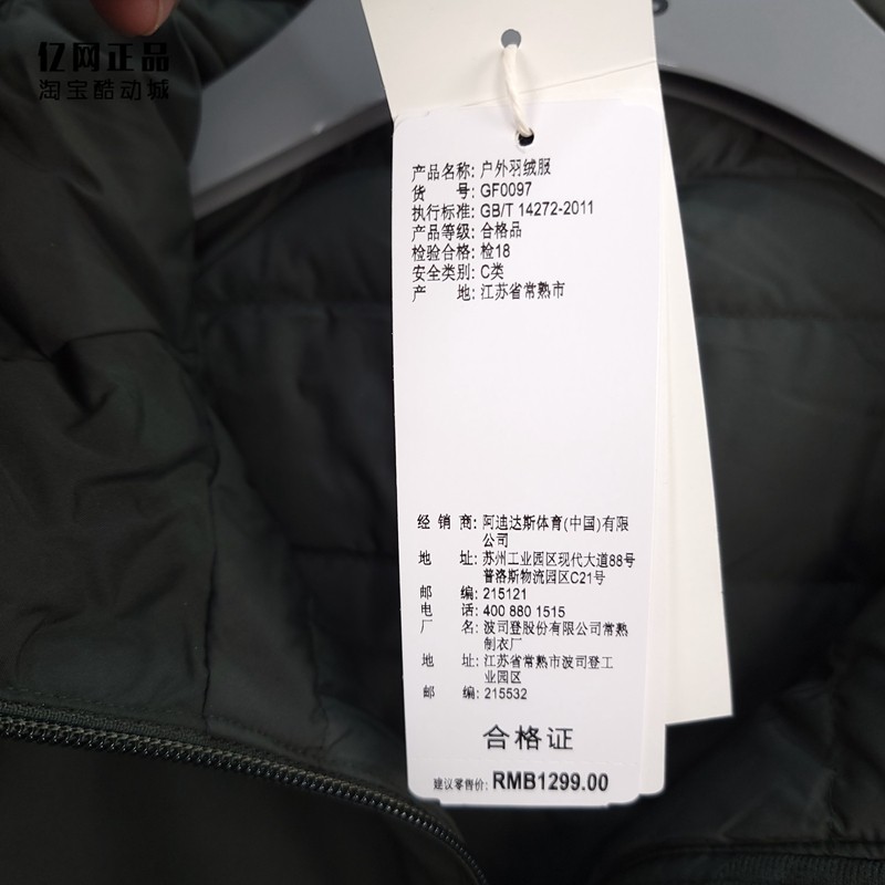 Adidas 阿迪达斯 男款运动休闲户外经典时尚连帽保暖羽绒服GF0097