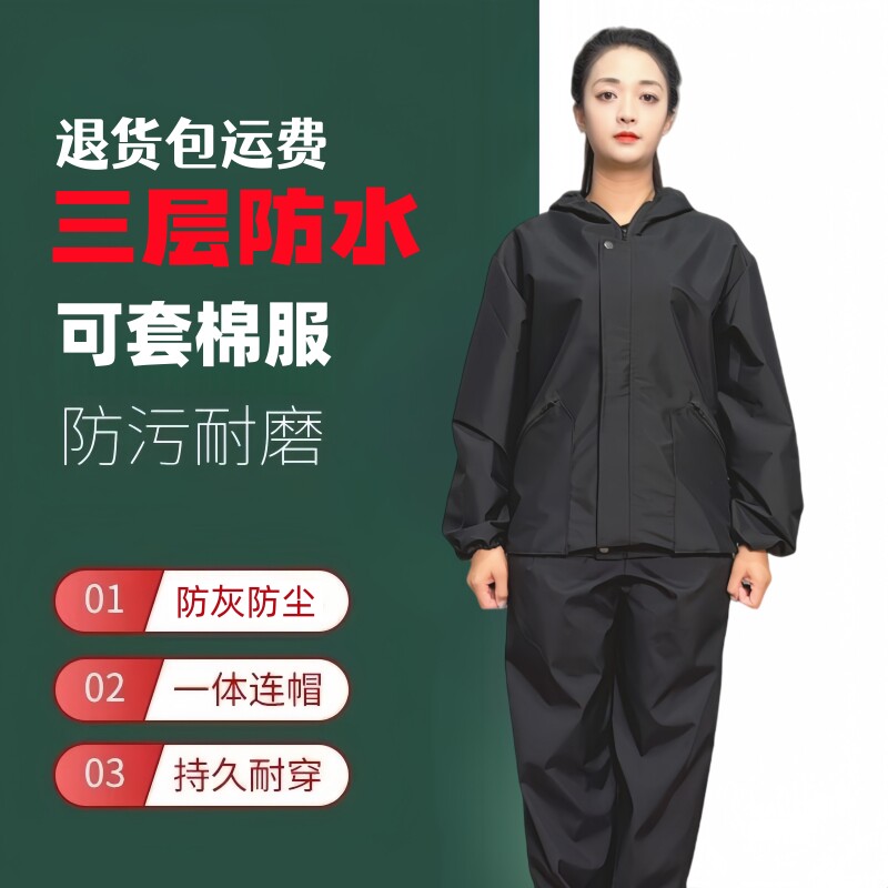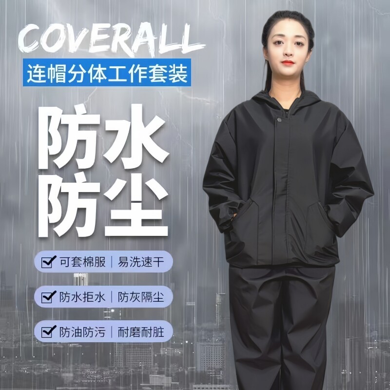 加厚防水防护服男女款连帽防尘防污耐磨带内衬工作服养殖工地车间