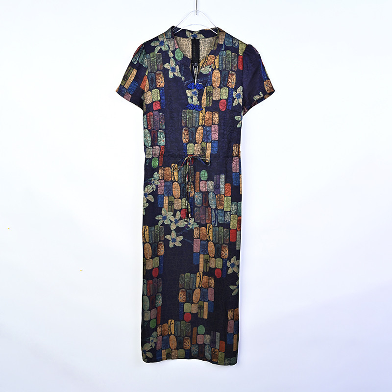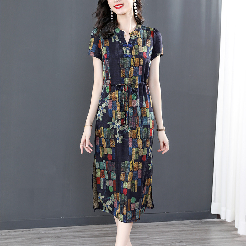 杭州正品真丝桑蚕丝连衣裙女夏新款高端品牌妈妈香云纱旗袍裙子