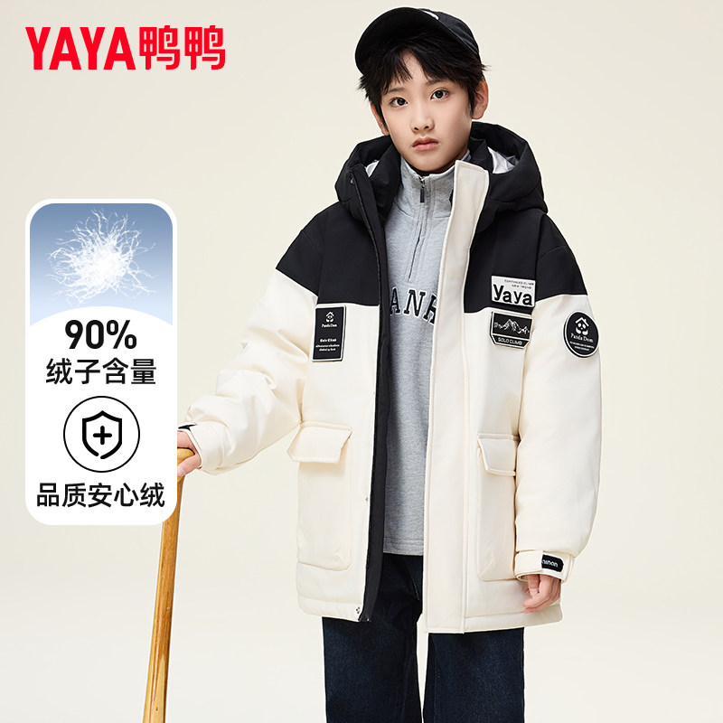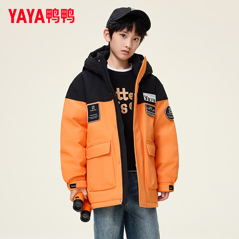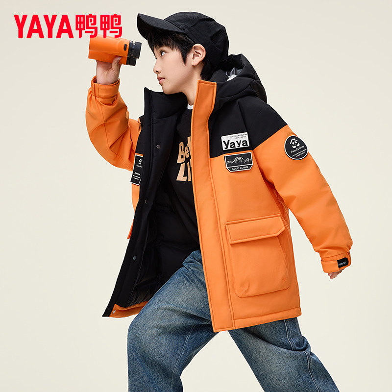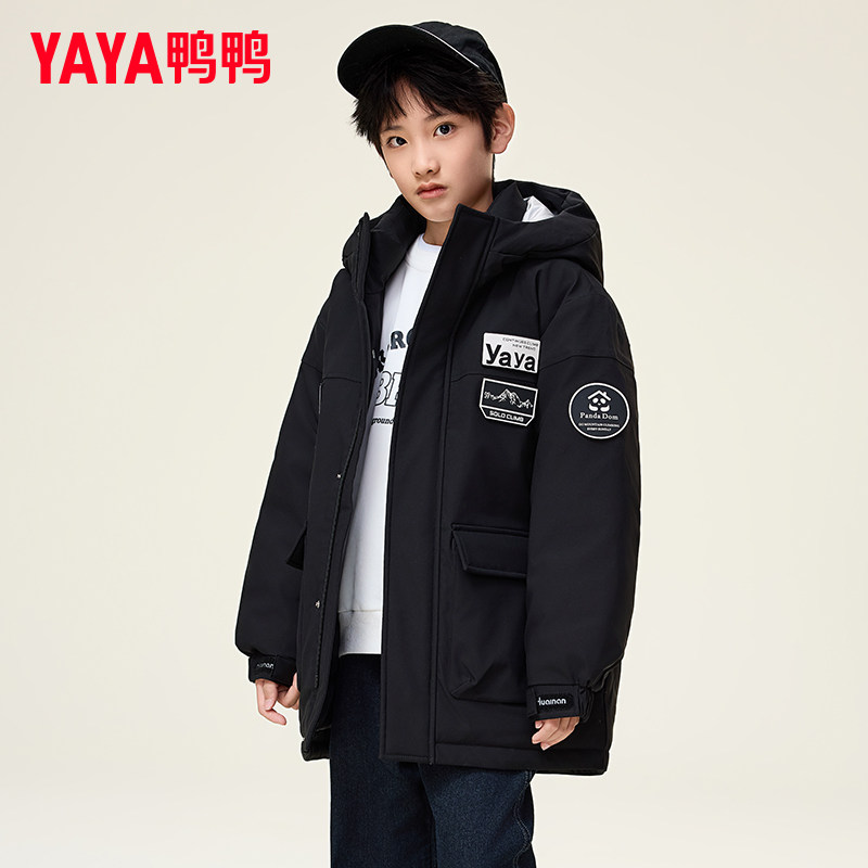鸭鸭儿童羽绒服男童宽松中长款学生冬季中大童装青少年防风外套GM
