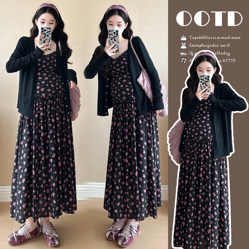 孕妇装春款连衣裙2025韩版大码胖妹妹200斤长袖打底薄款夏季长裙