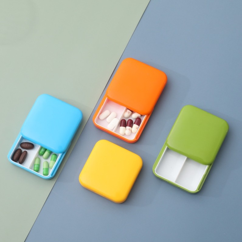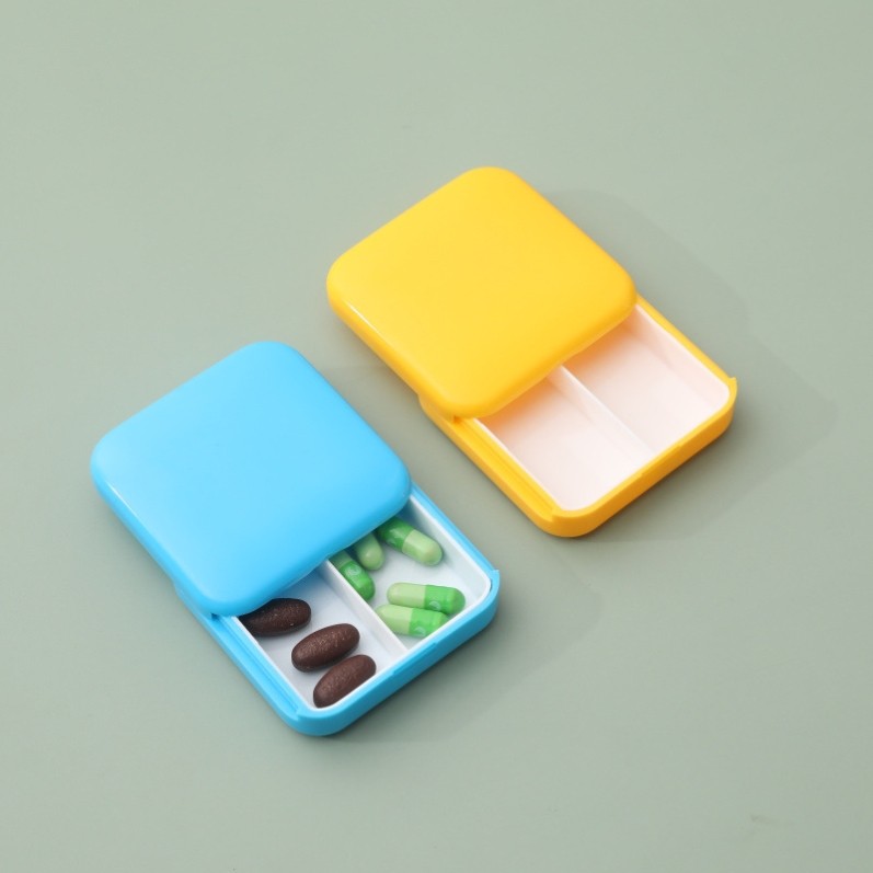遮光2格 迷你便携隐私药盒一天两次早晚分类每日式滑盖老人防吃错