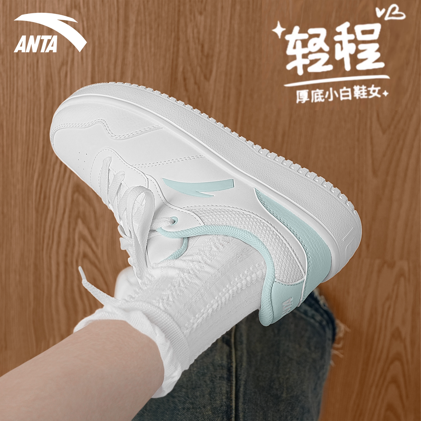 安踏板鞋女2026夏季新款厚底运动鞋增高显瘦轻便百搭低帮小白鞋子