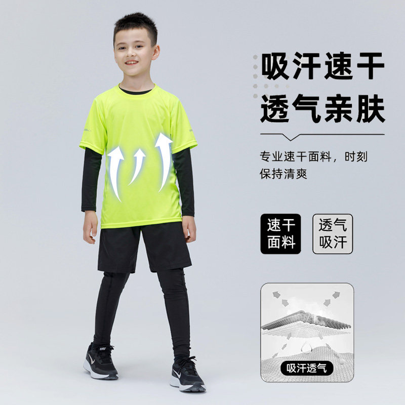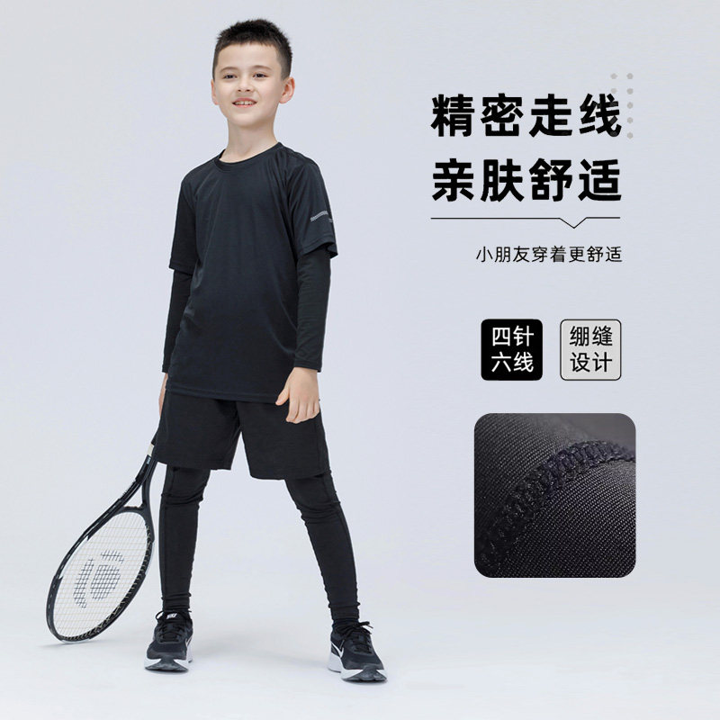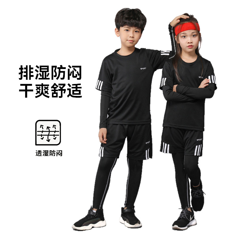 儿童篮球紧身衣训练服男女童足球运动套装四件套跑步专业健身服