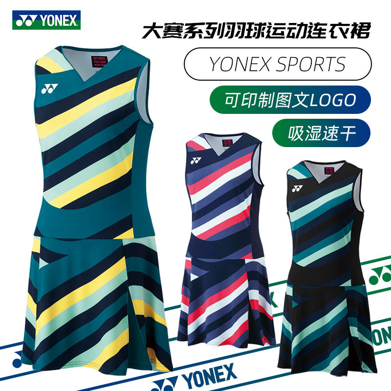 正品YONEX尤尼克斯羽毛球服连衣裙yy网球服女大赛服速干运动裙子