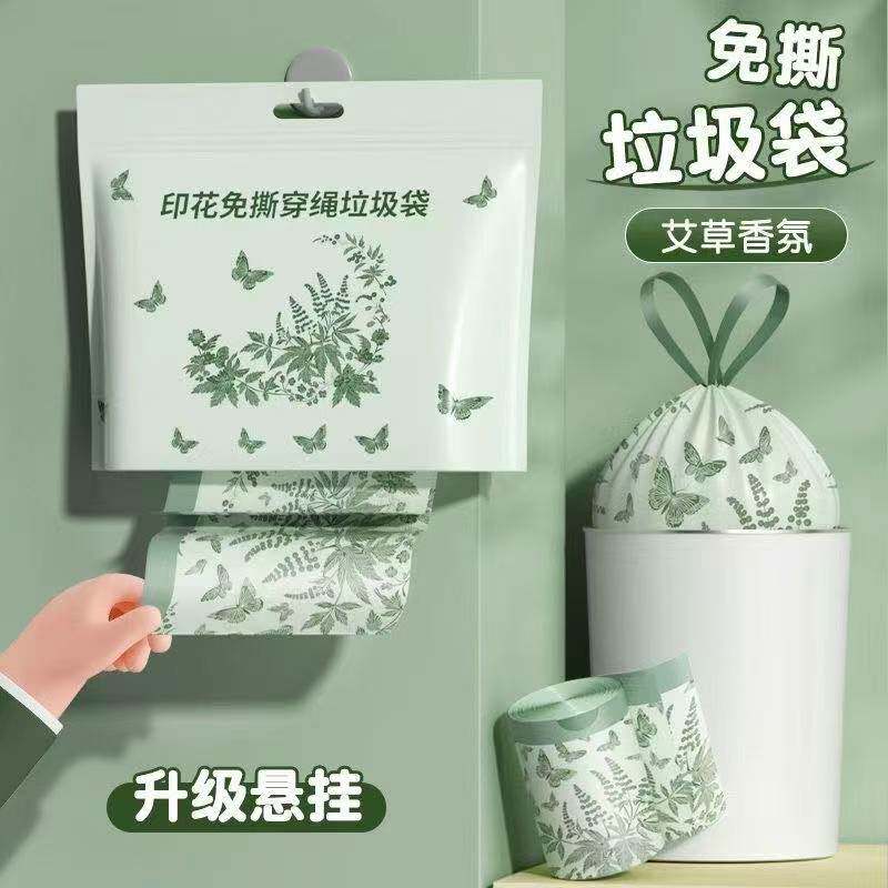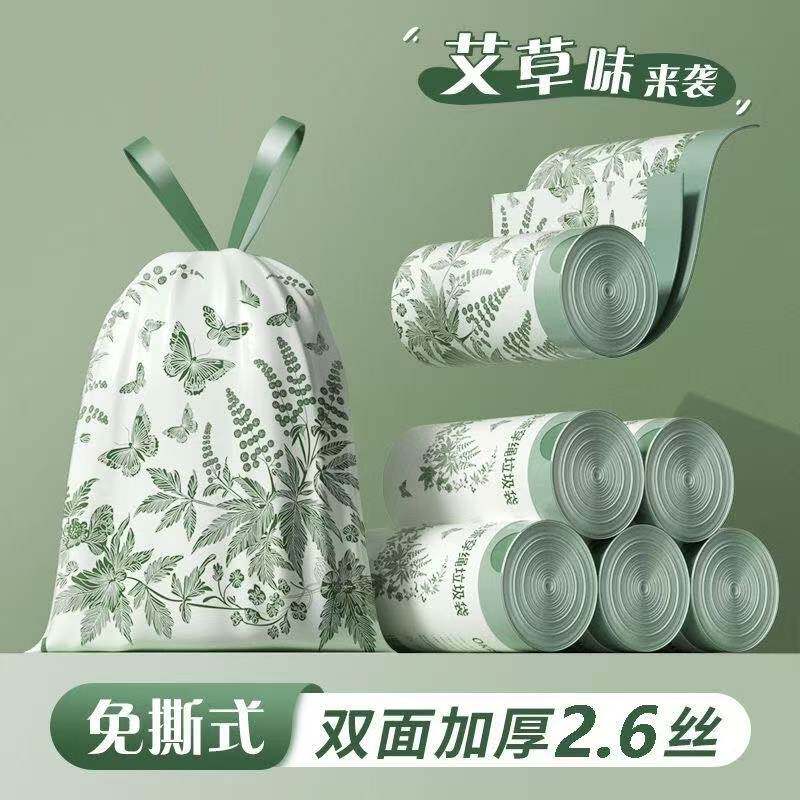 免撕加厚悬挂垃圾袋艾草驱蚊印花香氛加厚抽绳厨房手提式家用学生