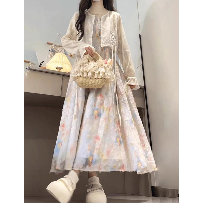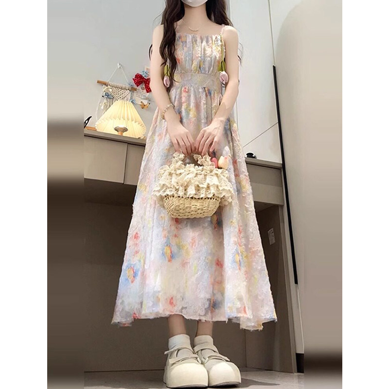 法式设计感方领碎花吊带连衣裙子女装夏季2026新款巨好看掐腰长裙