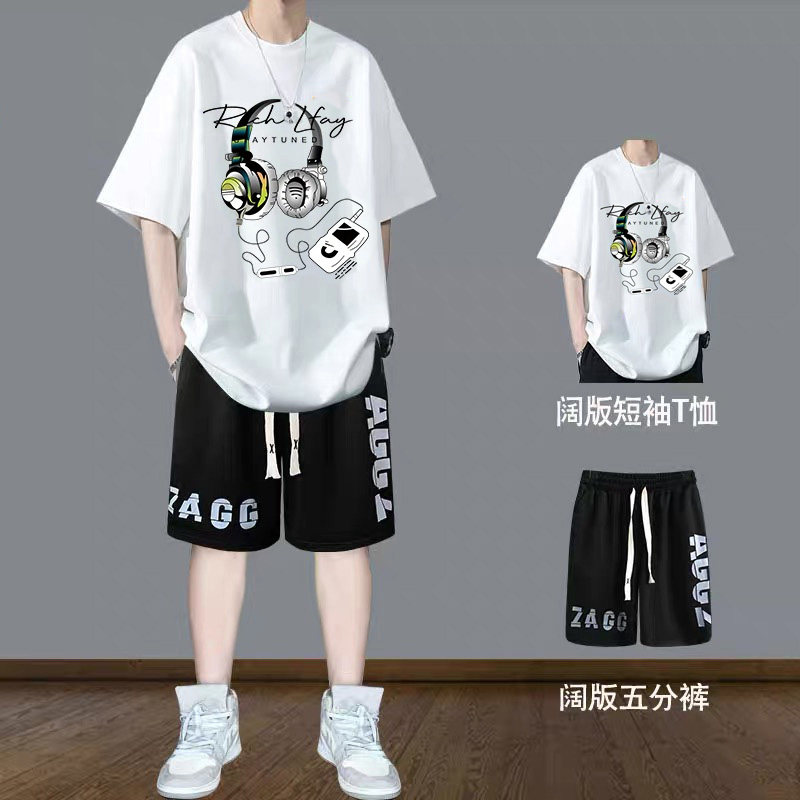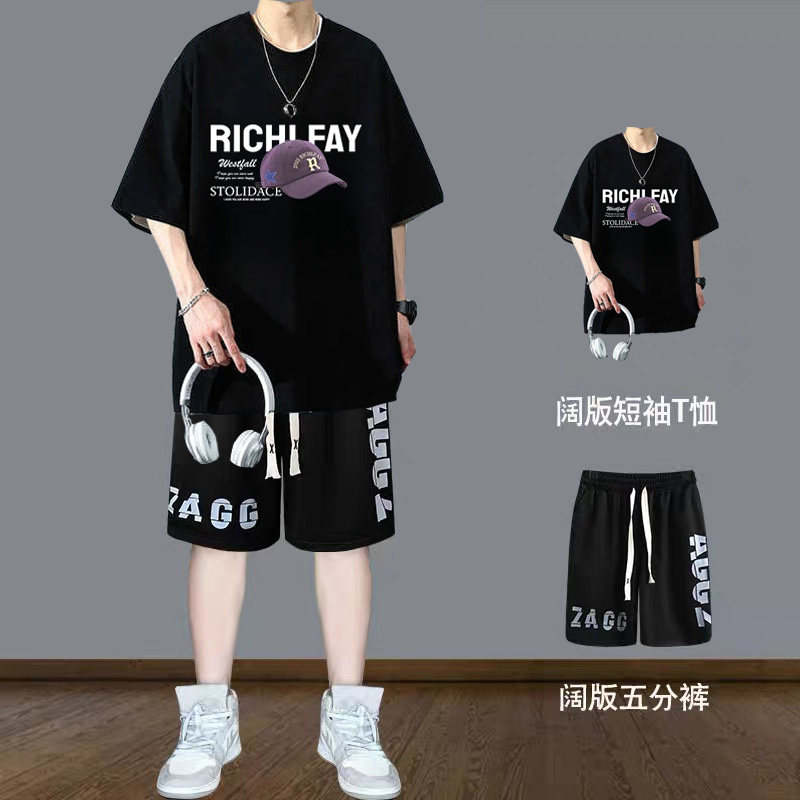 青少年短袖t恤男生夏季衣服2026穿搭纯棉帅气初高中学生潮流套装