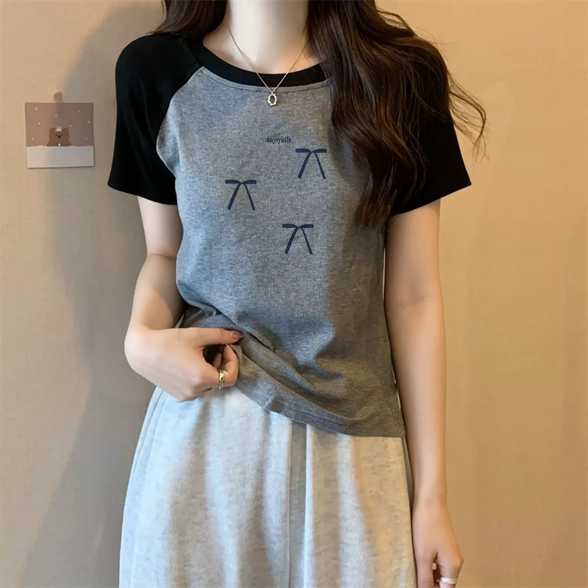 女士纯棉T恤女短袖2026新款夏季宽松设计感小众撞色别致上衣女装