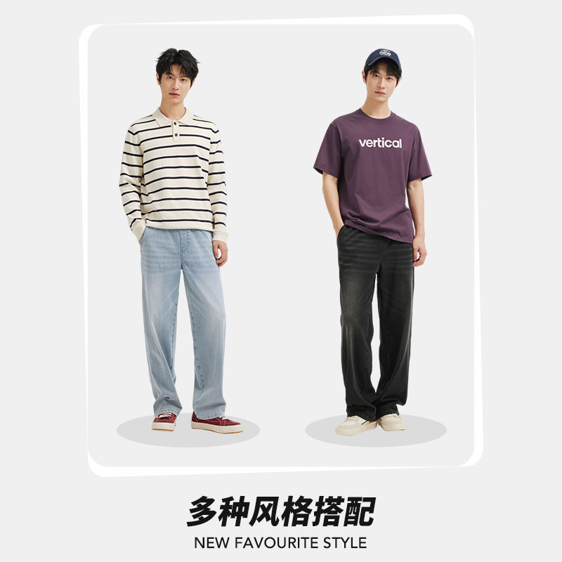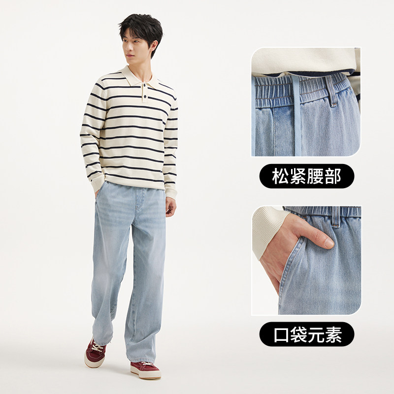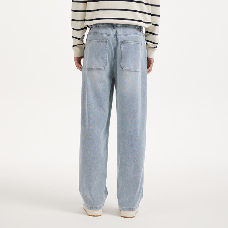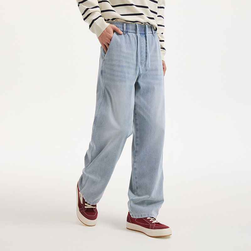 热风2026年春季新款男士休闲直筒牛仔裤纯色浅色松紧腰宽松牛仔裤