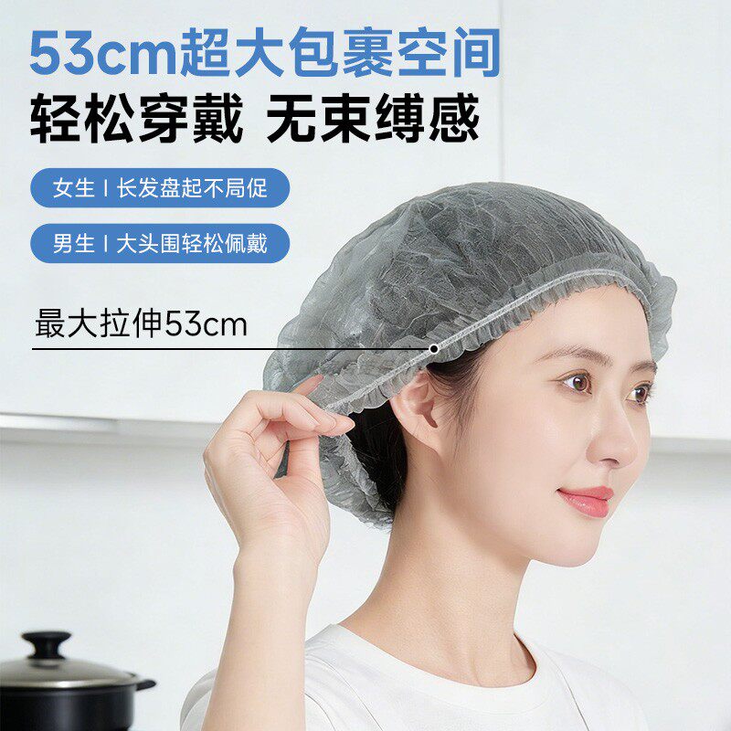 一次性帽子抽取式盒装7A加厚餐饮厨房防尘头套灰色无纺布食品网帽