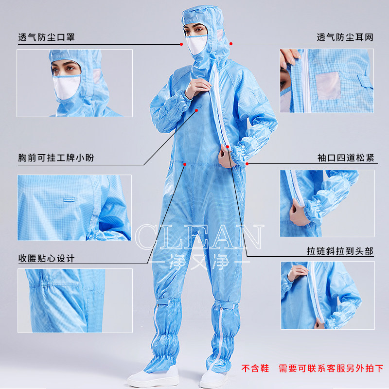 防静电无尘服网格连体防护服百级净化车间衣服全身防尘洁净工作服