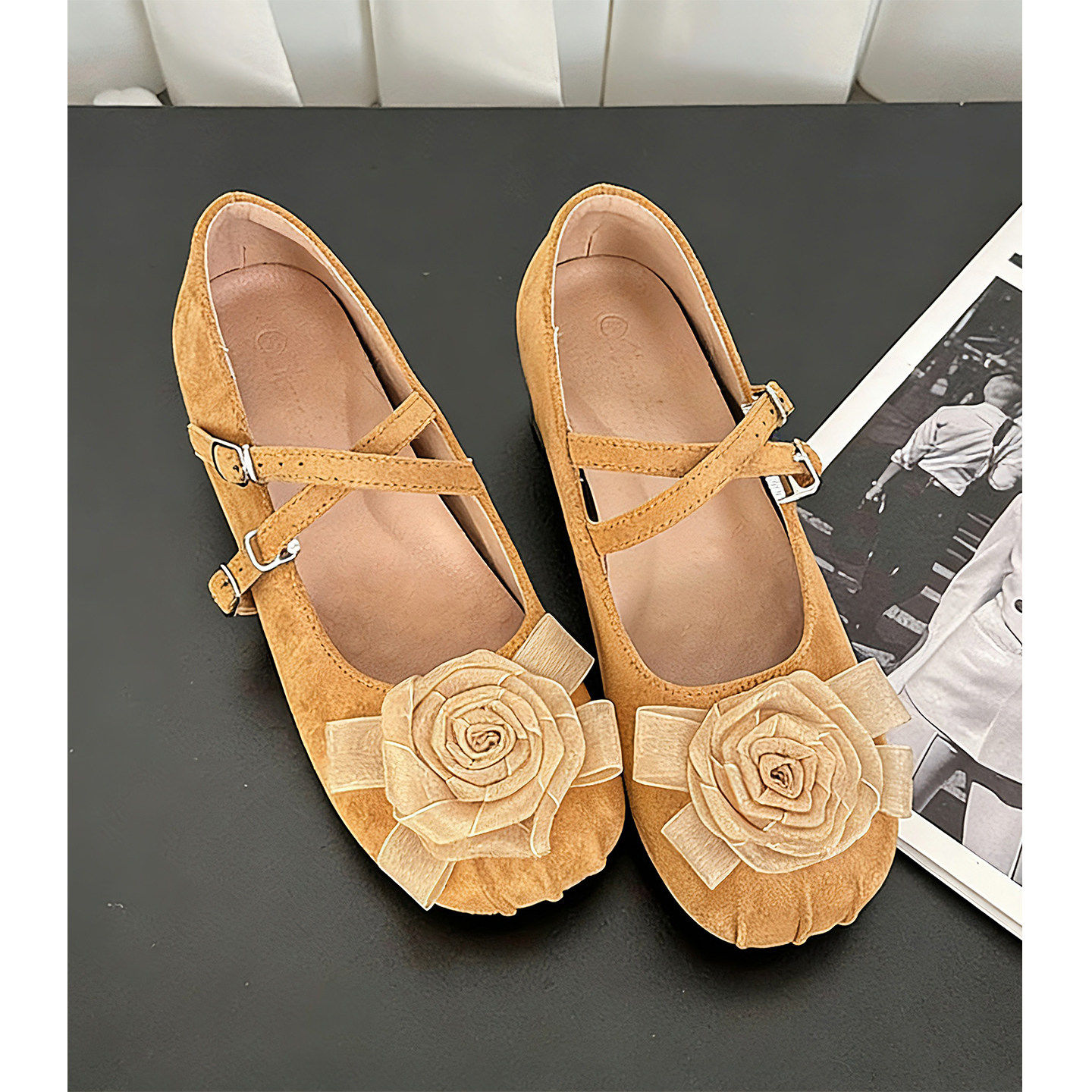 真皮温柔风内增高玛丽珍鞋女2026年新款花朵粗跟小个子单鞋不累脚