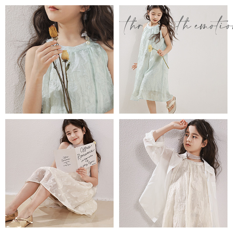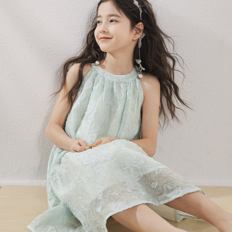 多妙屋女童连衣裙2026新款洋气夏季儿童挂脖裙女孩夏天度假裙子