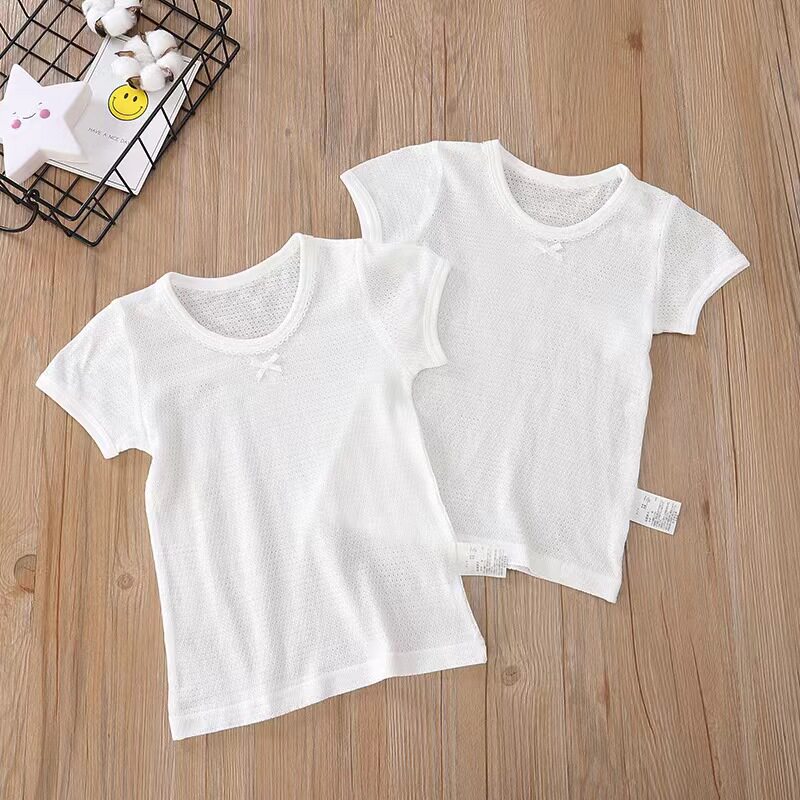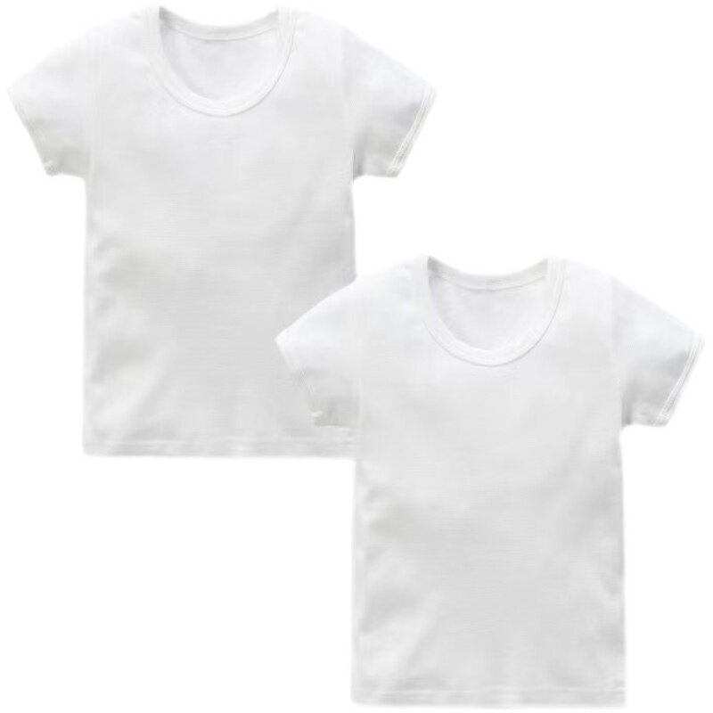 白色纯色短袖两件装日系A类纯棉薄款透气柔软男童女童圆领打底T恤