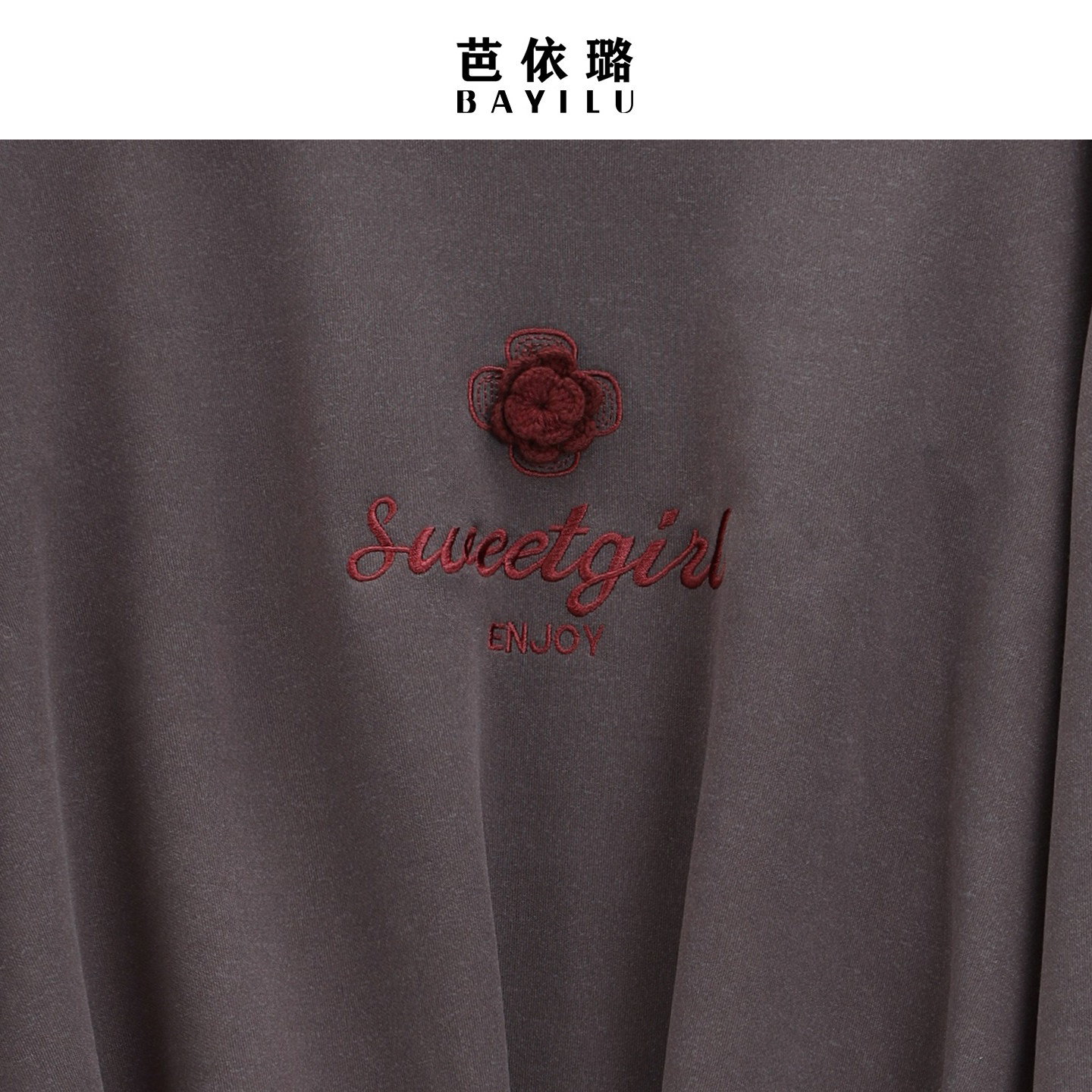 芭依璐2026春季新款慵懒风简约套头圆领卫衣宽松显瘦长袖外套上衣