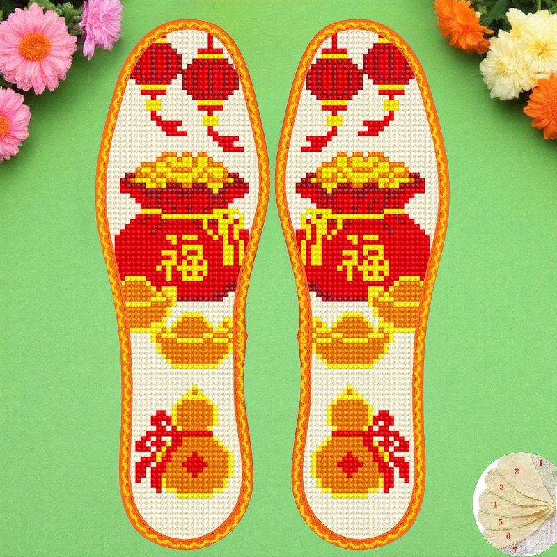 2026十字绣鞋垫新款七层棉布针孔印花十字绣半成品自己绣手工鞋垫