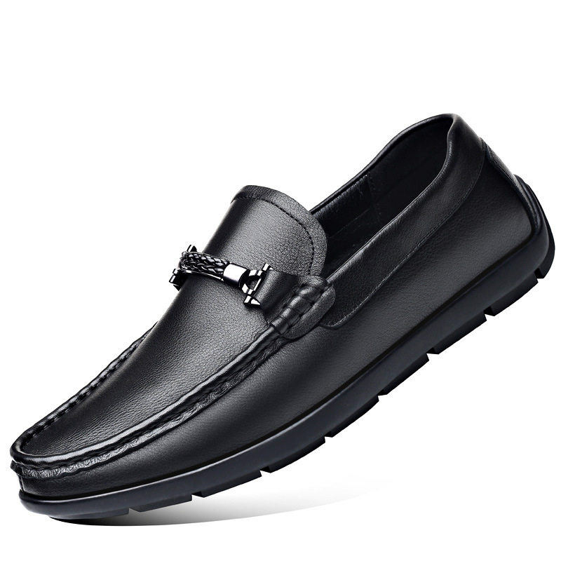 新款头层牛皮豆豆鞋套脚男士休闲皮鞋真皮欧货男鞋男款爸爸鞋子软
