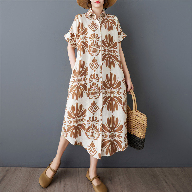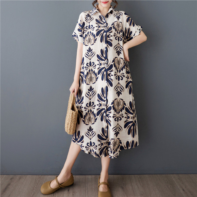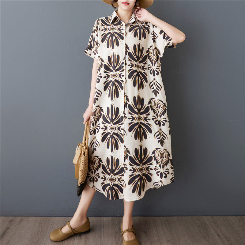 夏季大码宽松胖MM纯棉衬衫连衣裙200斤中长款短袖欧洲站短袖衬衫