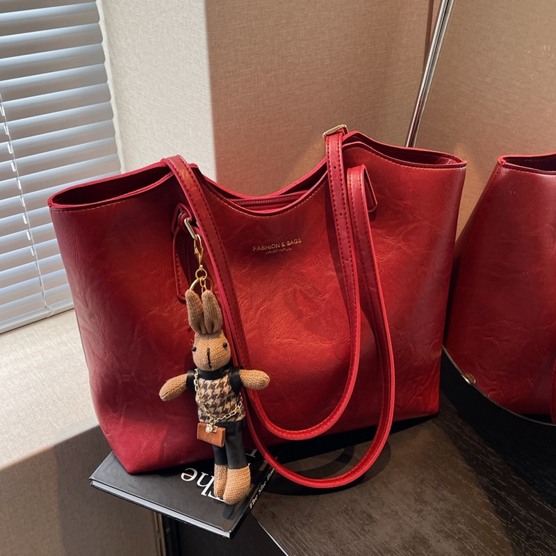 红色大包包女2026新款高级感结婚新娘包大容量通勤百搭单肩托特包