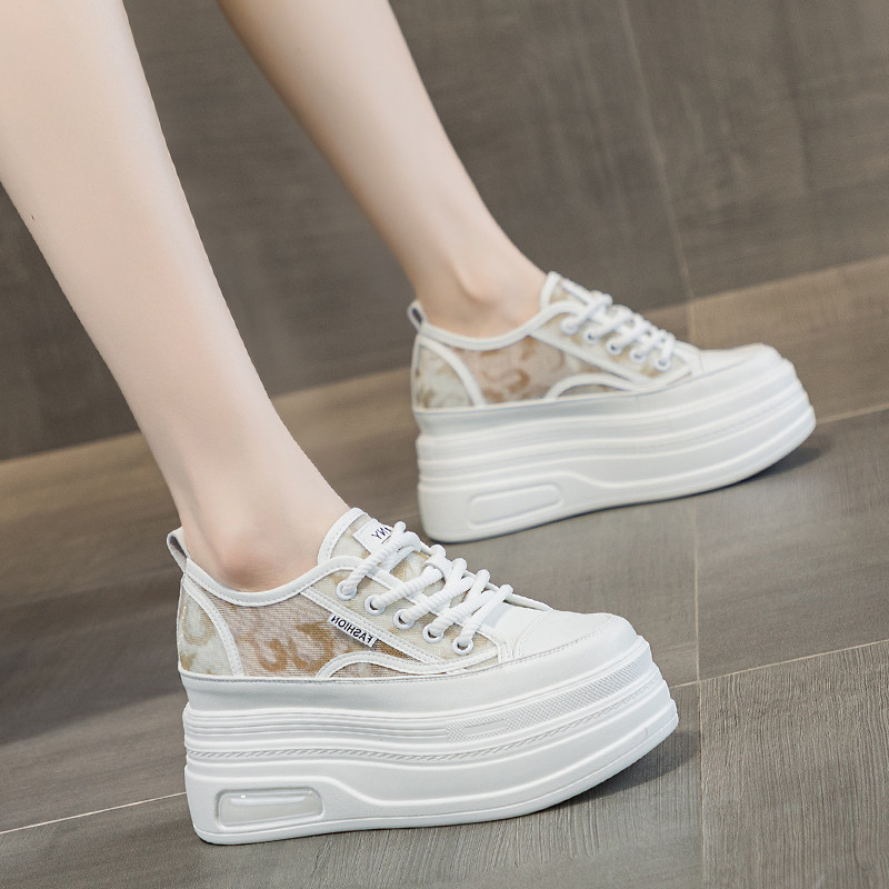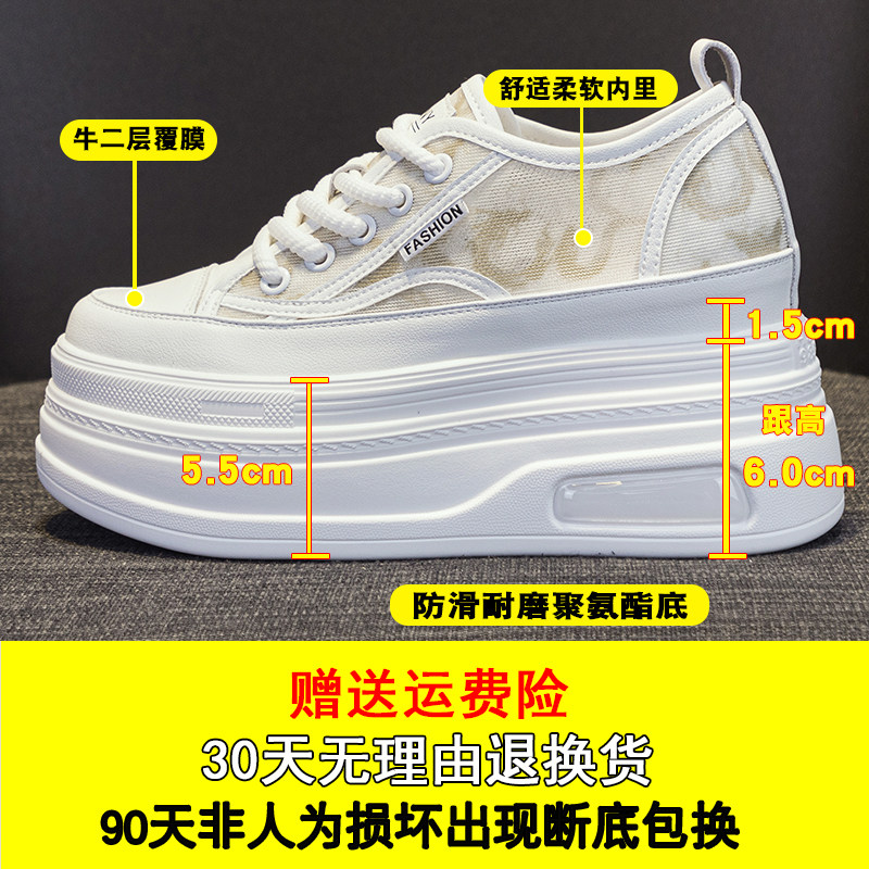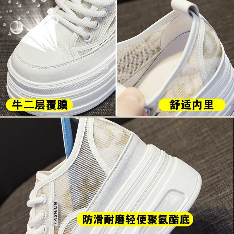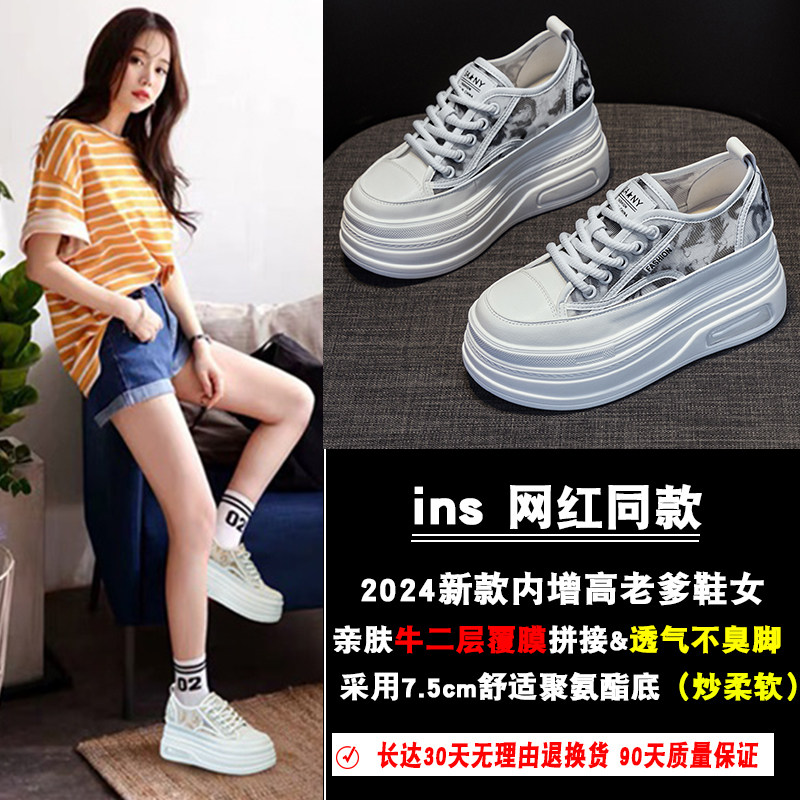 外贸松糕老爹鞋女款轻便2024夏天真皮内增高女士小个子单网休闲鞋