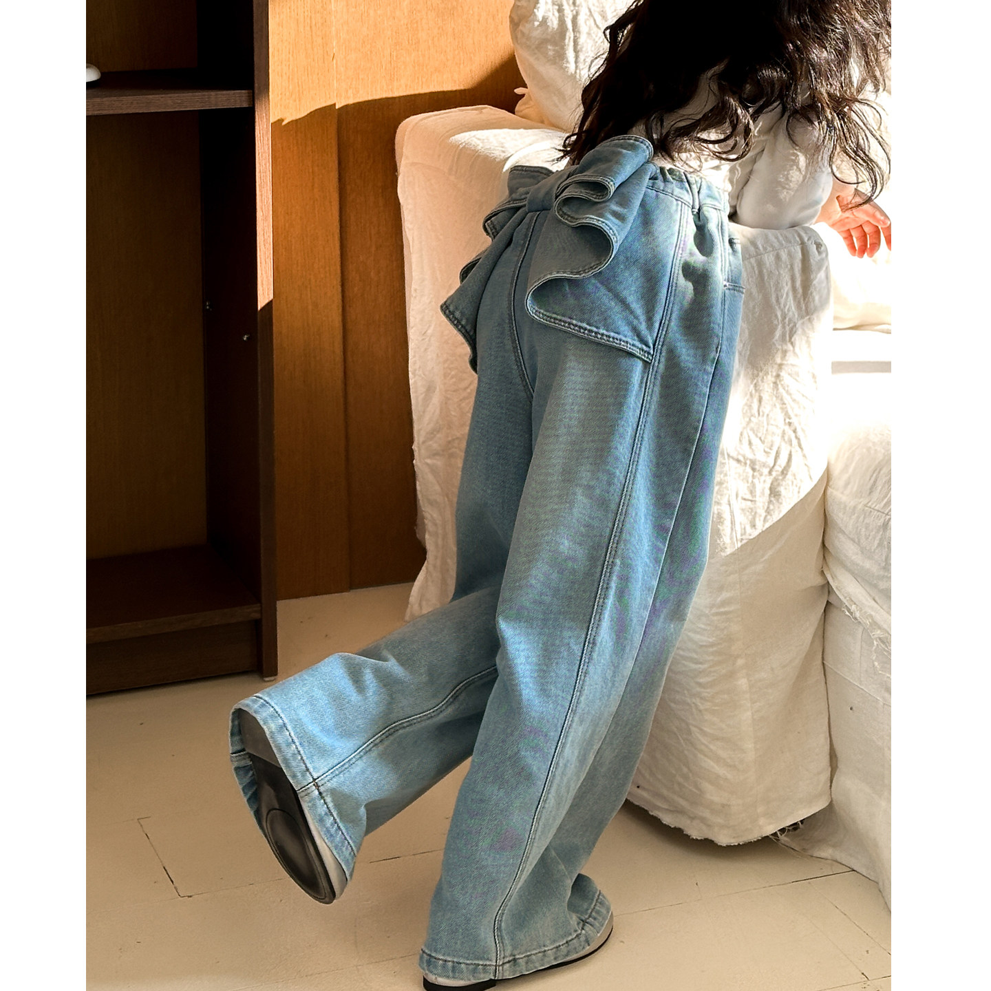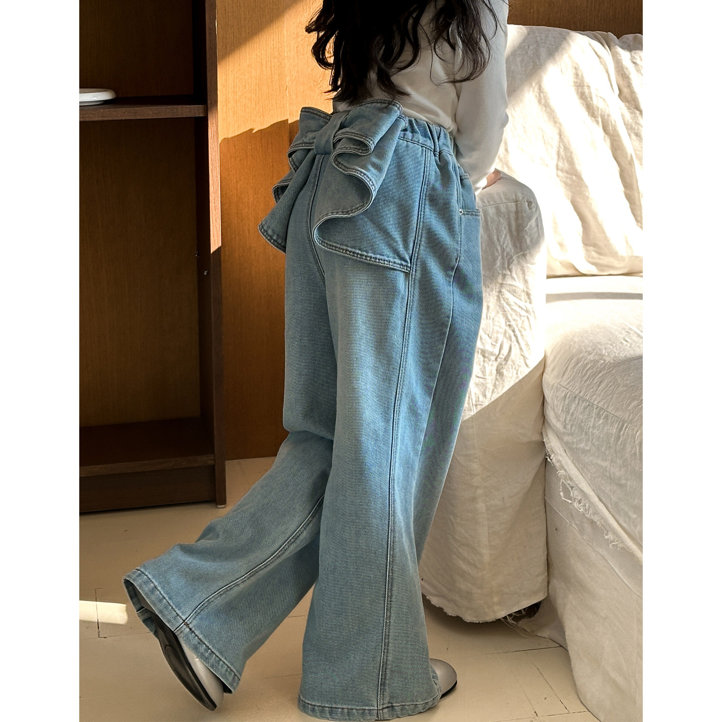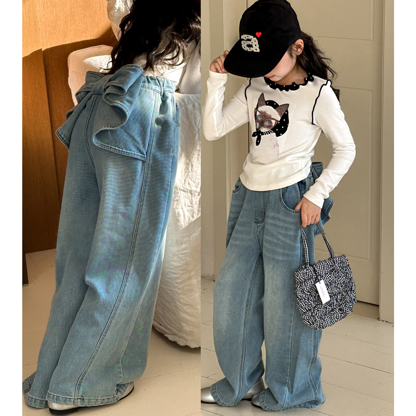 女童牛仔裤春秋款2026新款初中生宽松阔腿裤春装韩系女大童装裤子