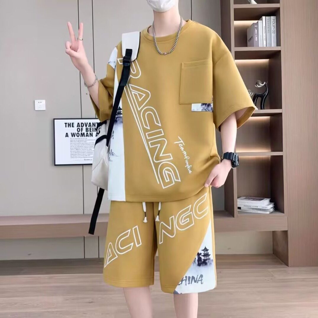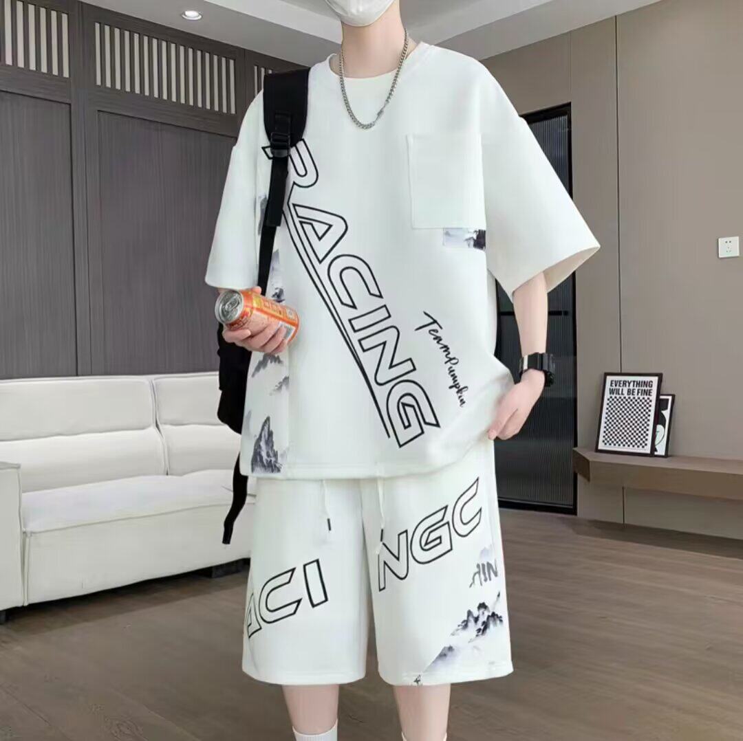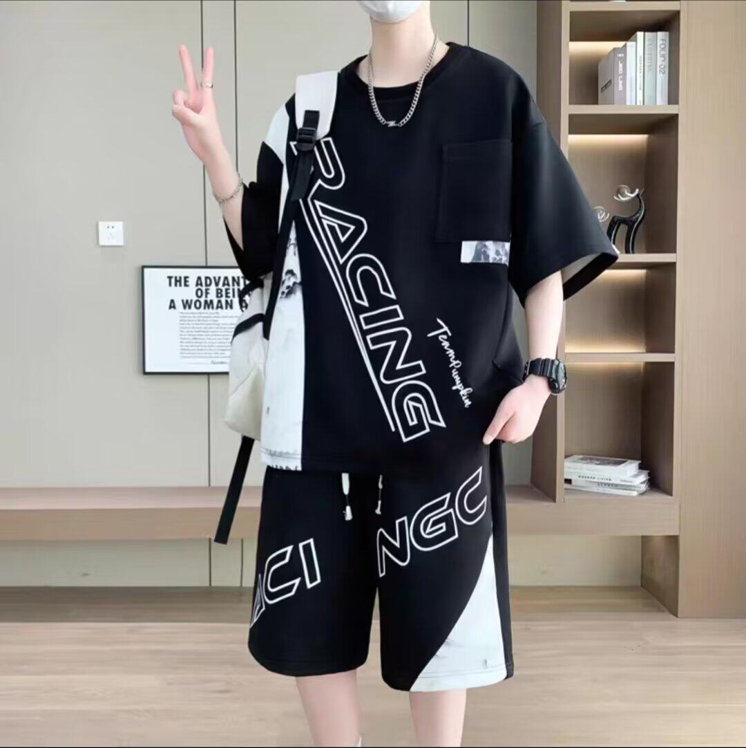青少年短袖t恤男高中初中学生潮流夏季大码宽松休闲运动衣服套装