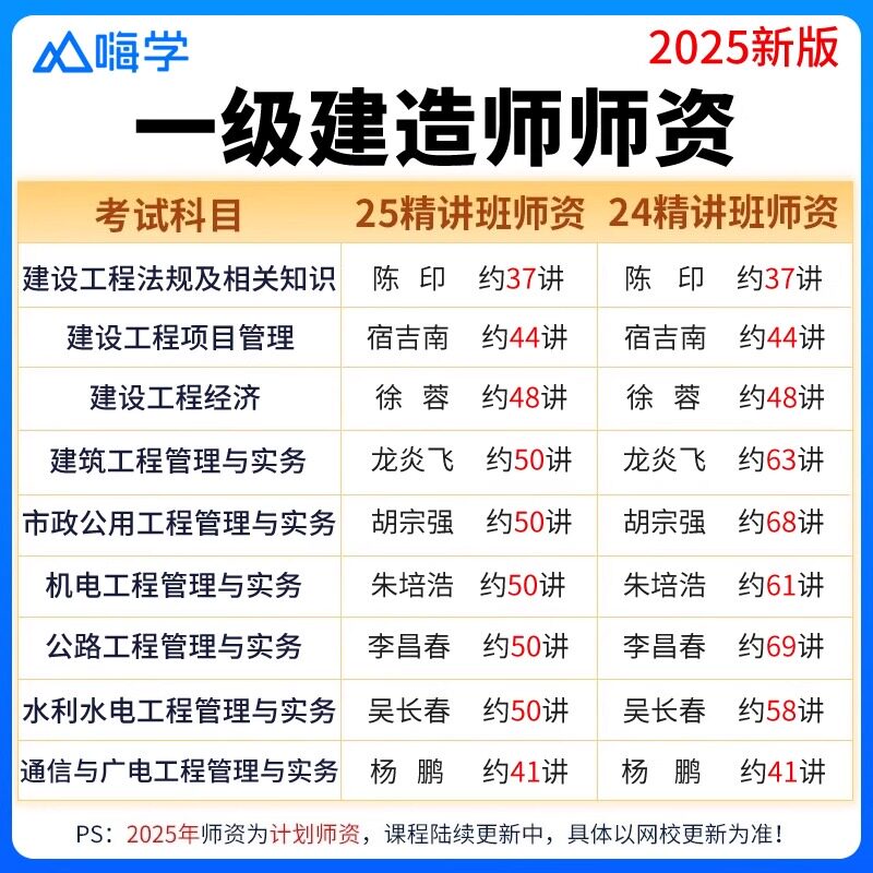 嗨学官方一建网课视频2025年一级建造师考试教材课程建筑实务市政机电公路水利讲义25建工社二级二建刷题软件龙炎飞陈印周超精讲课
