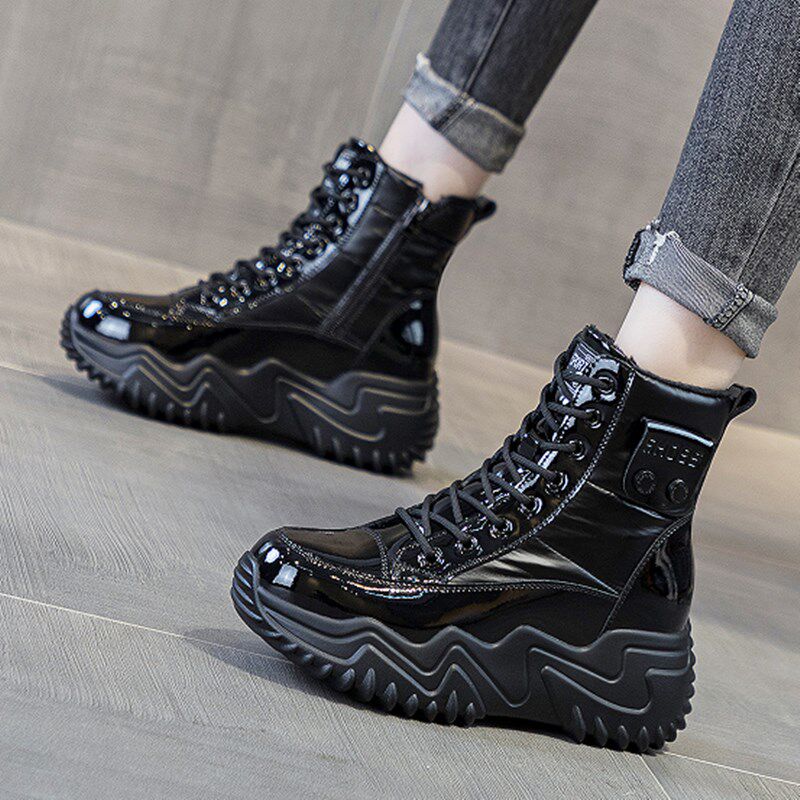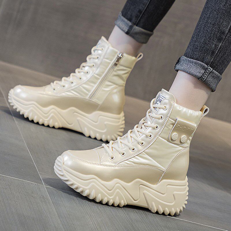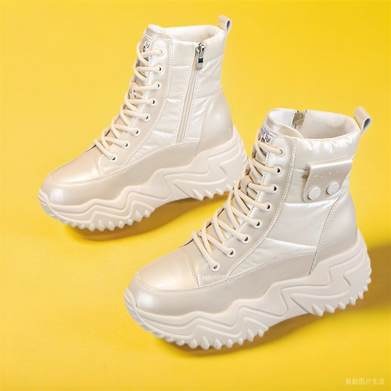 内增高女鞋冬天加绒保暖配阔腿裤的鞋子厚底防滑马丁靴短筒雪地靴