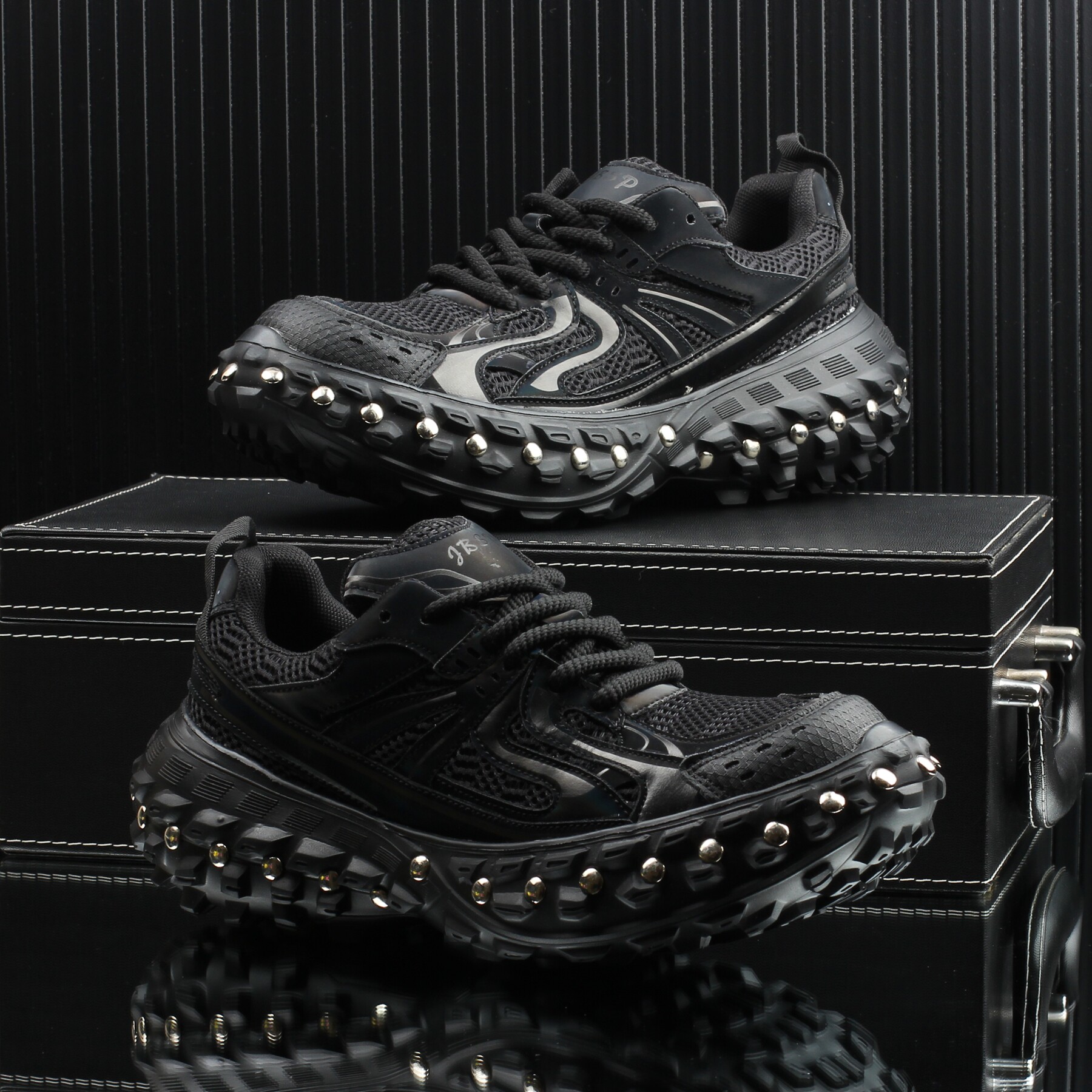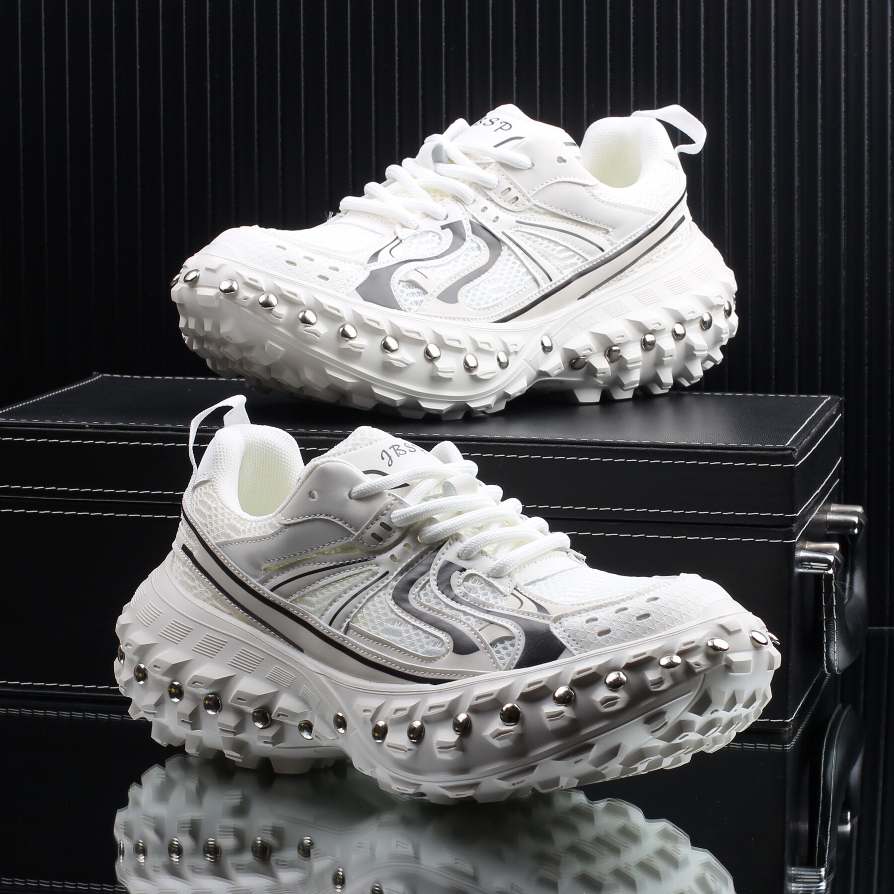 高级感潮牌男鞋夏季透气厚底增高老爹鞋男款铆钉网面运动休闲潮鞋