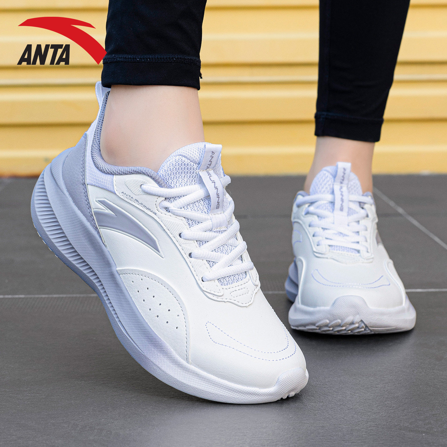 安踏女鞋跑步鞋2026新款夏季女款皮面防水休闲鞋官方旗舰运动鞋女