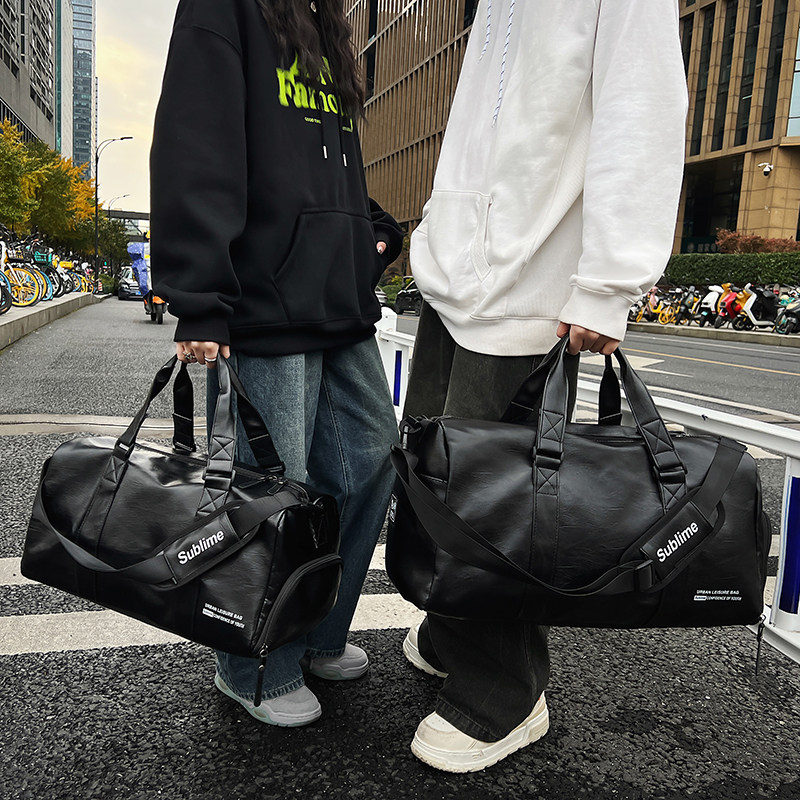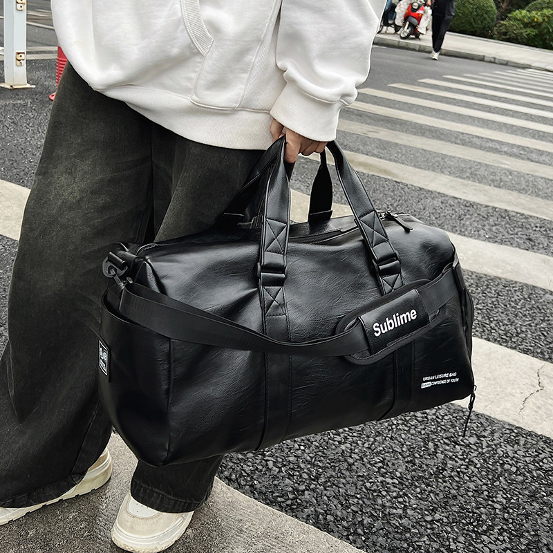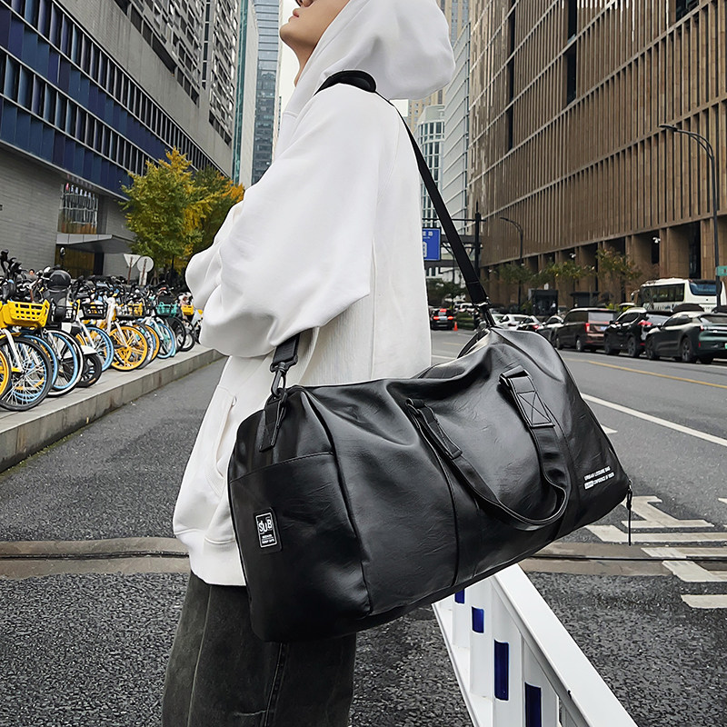 短途旅行包男款大容量pu皮质运动健身包男单肩斜挎背包手提行李包