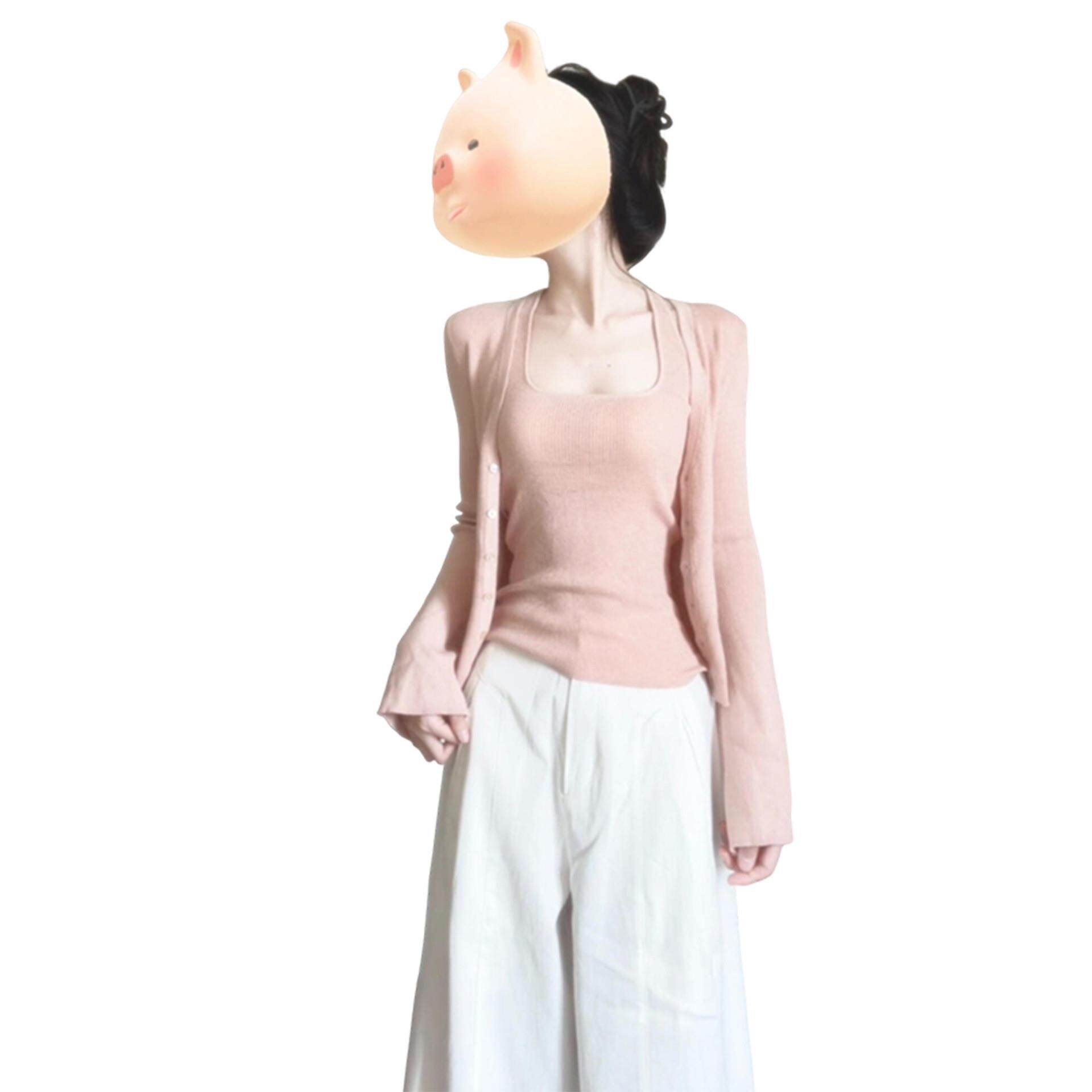毛衣针织开衫外套女春秋季2026新款早春穿搭粉色吊带背心上衣套装
