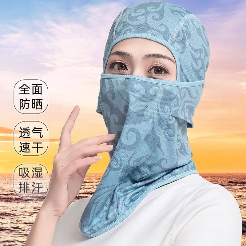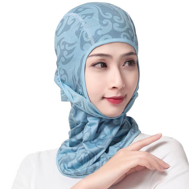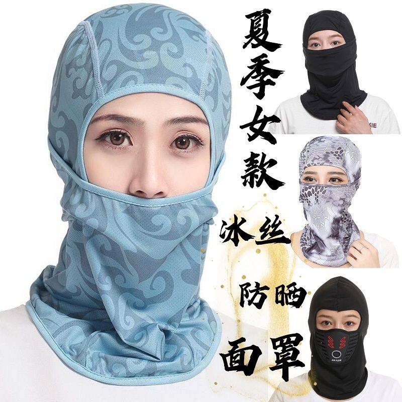 女款夏季骑行防晒头套帽子防尘透气速干帽面罩印花防风冰丝一体帽