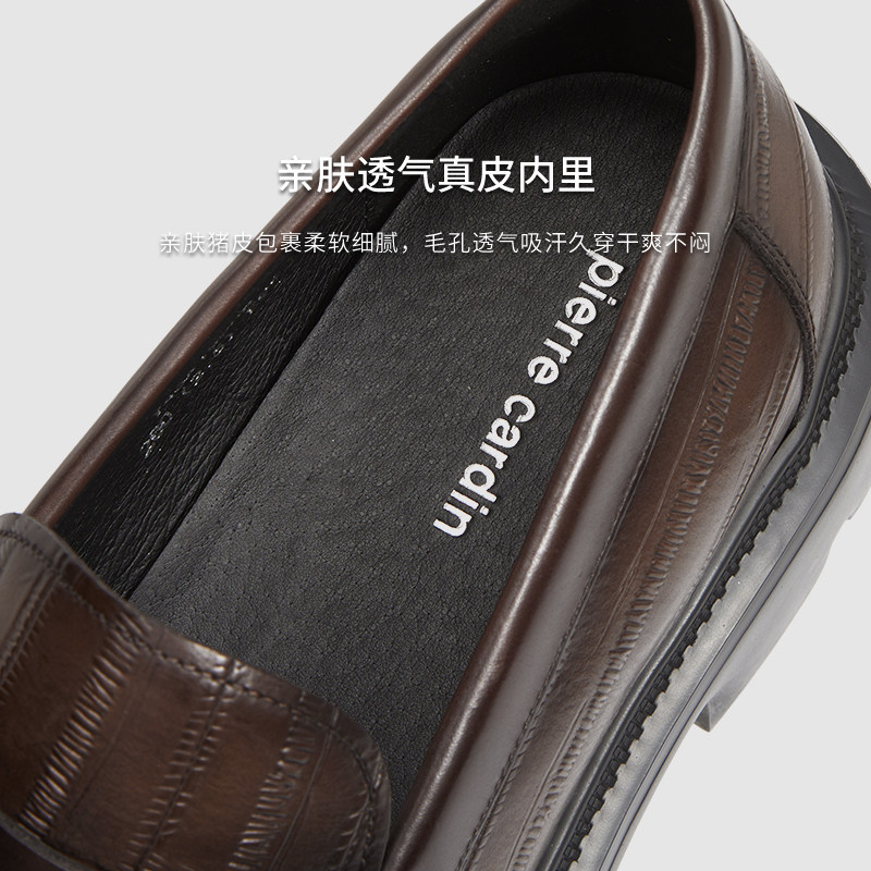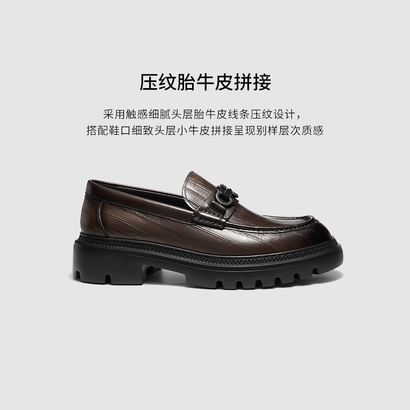 311线报网描述:压纹胎牛皮拼接 轻底舒适乐福鞋