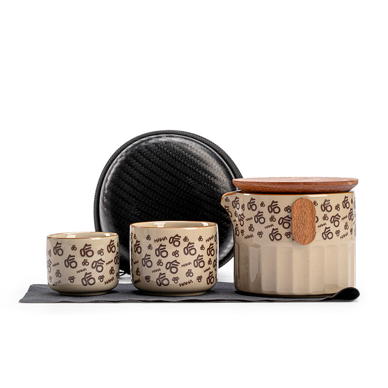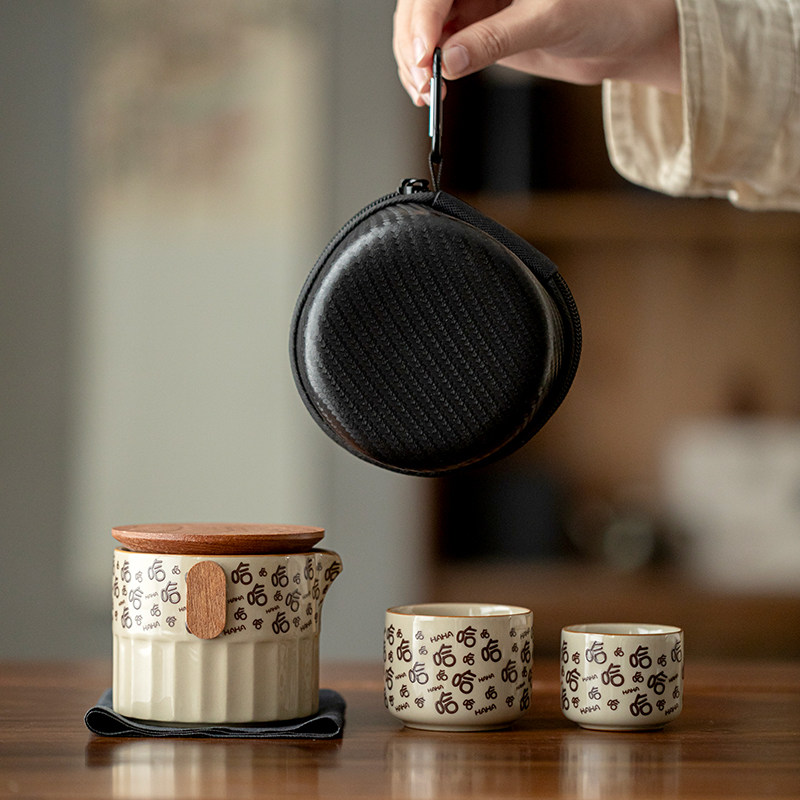 创意便携式旅行茶具套装一壶两杯收纳包户外陶瓷泡茶壶小套装