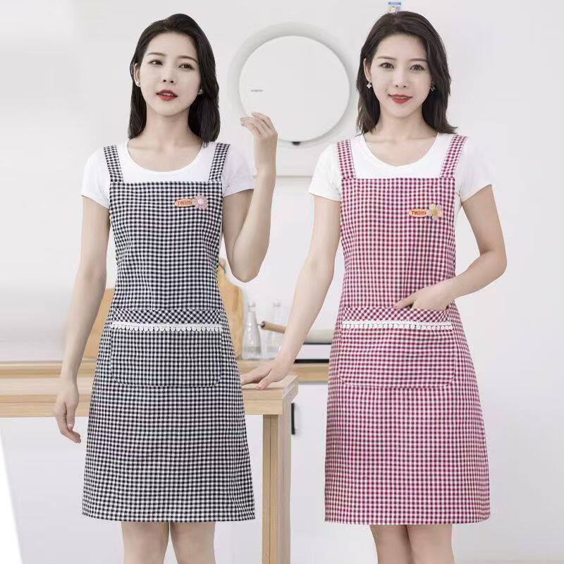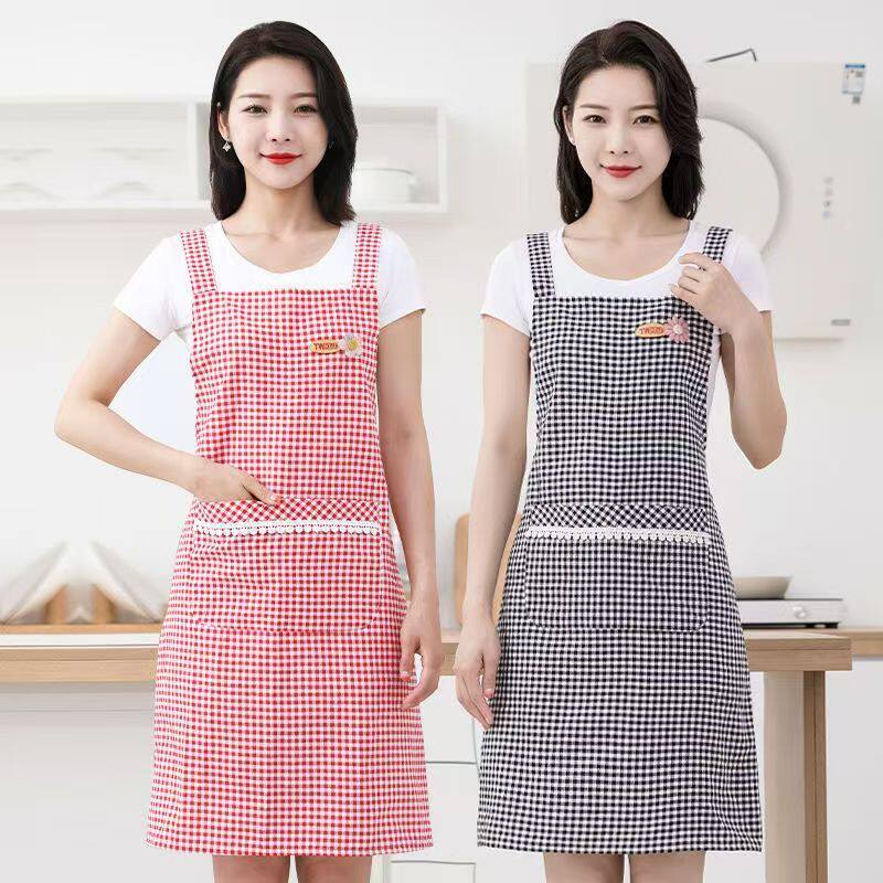 围裙棉布透气洋气围腰厨房家用上班干活耐脏耐磨宽背带工作服外穿