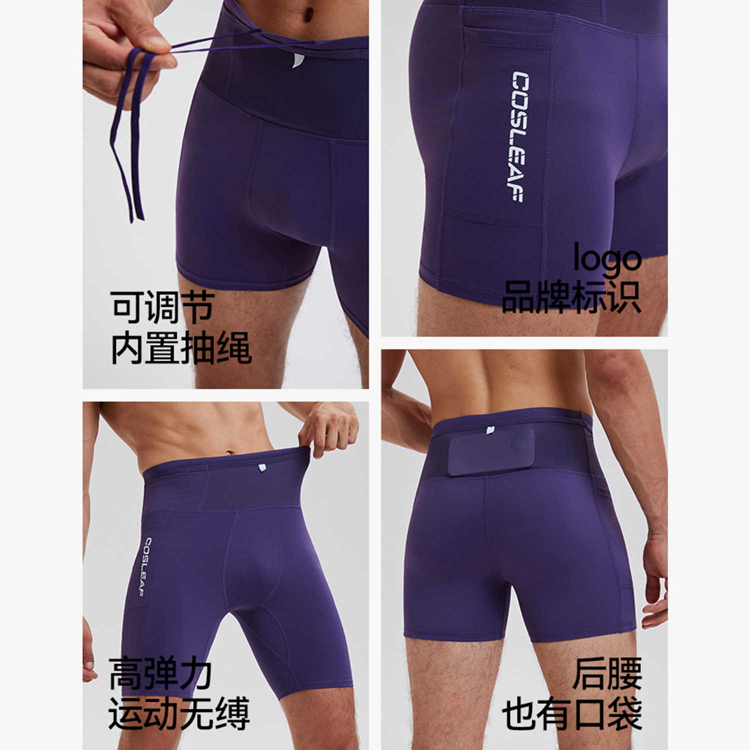 科里芙健身裤男高弹透气压缩裤骑行跑步马拉松多口袋紧身运动短裤