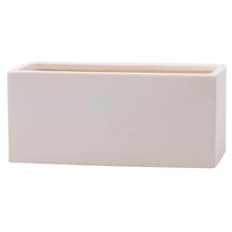 简约素烧长方形花盆透气吸水白陶土长条粗陶瓷器带托植物多肉绿植