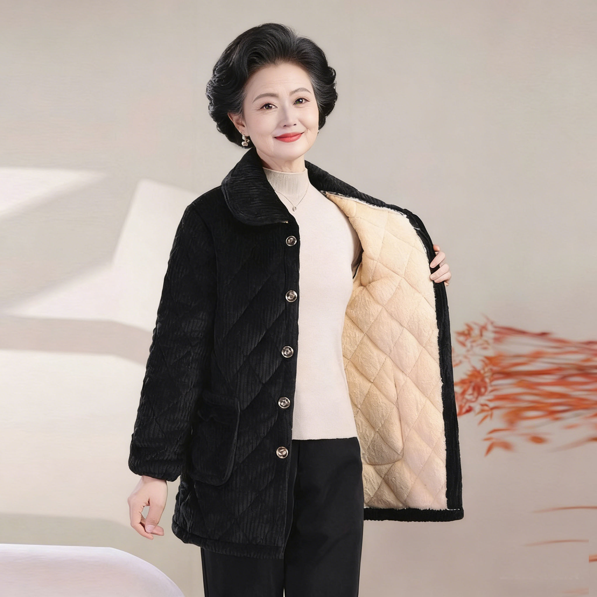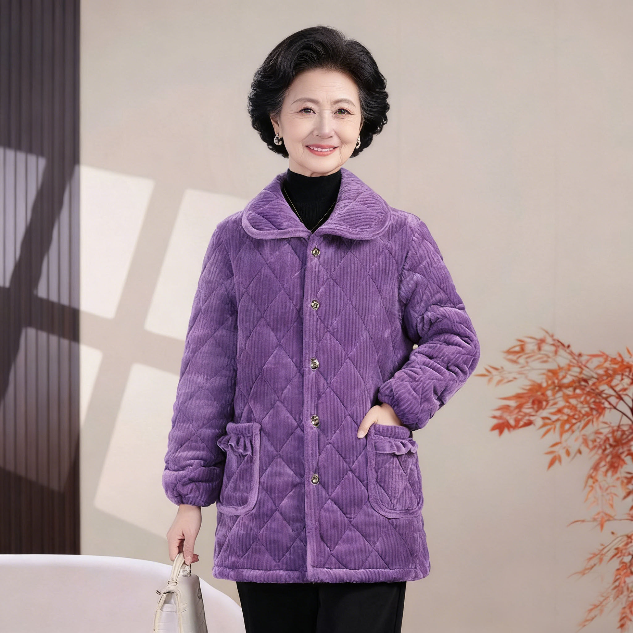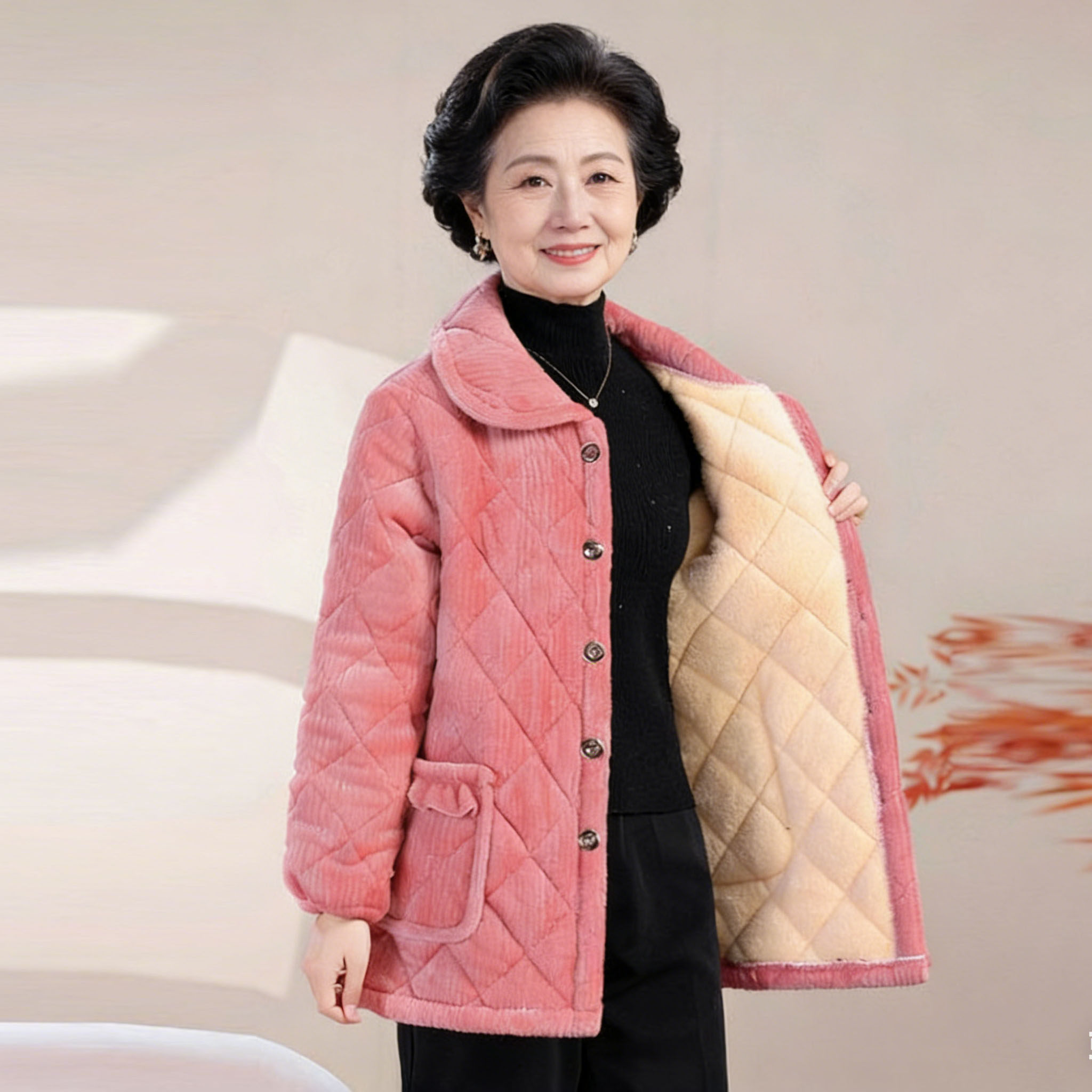 中年妈妈睡衣女款上衣单件冬季棉袄加绒加厚中老年保暖家居服外套