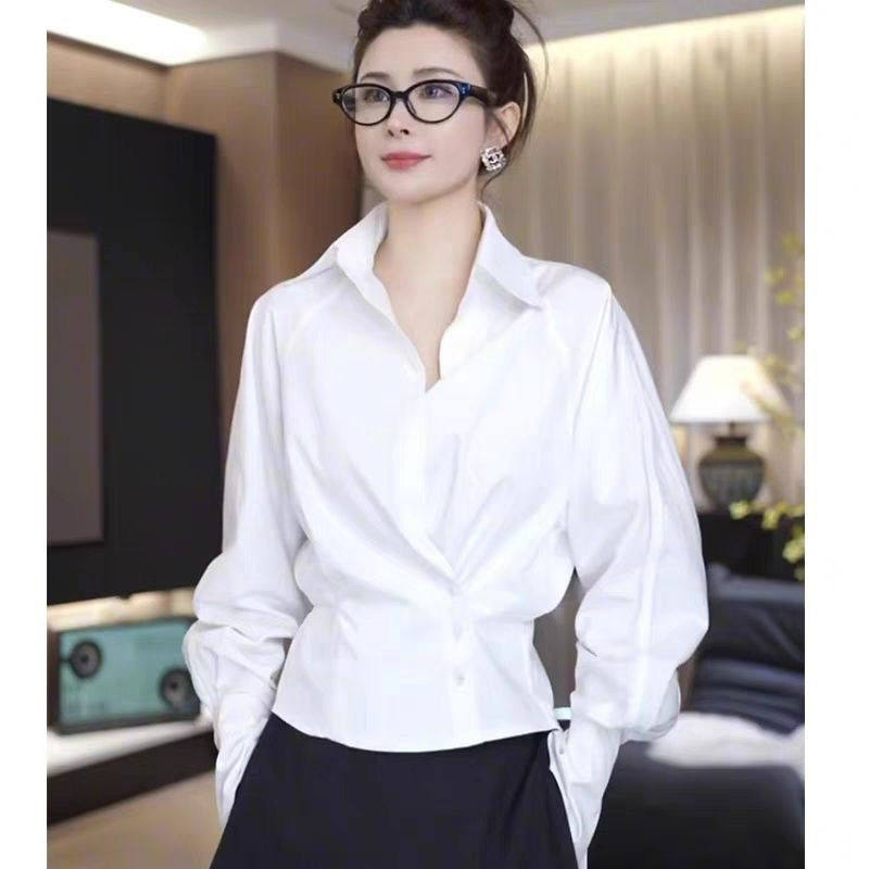 法式纯欲白色衬衫女款春装2025超火衬衣轻奢高级感减龄泡泡袖上衣