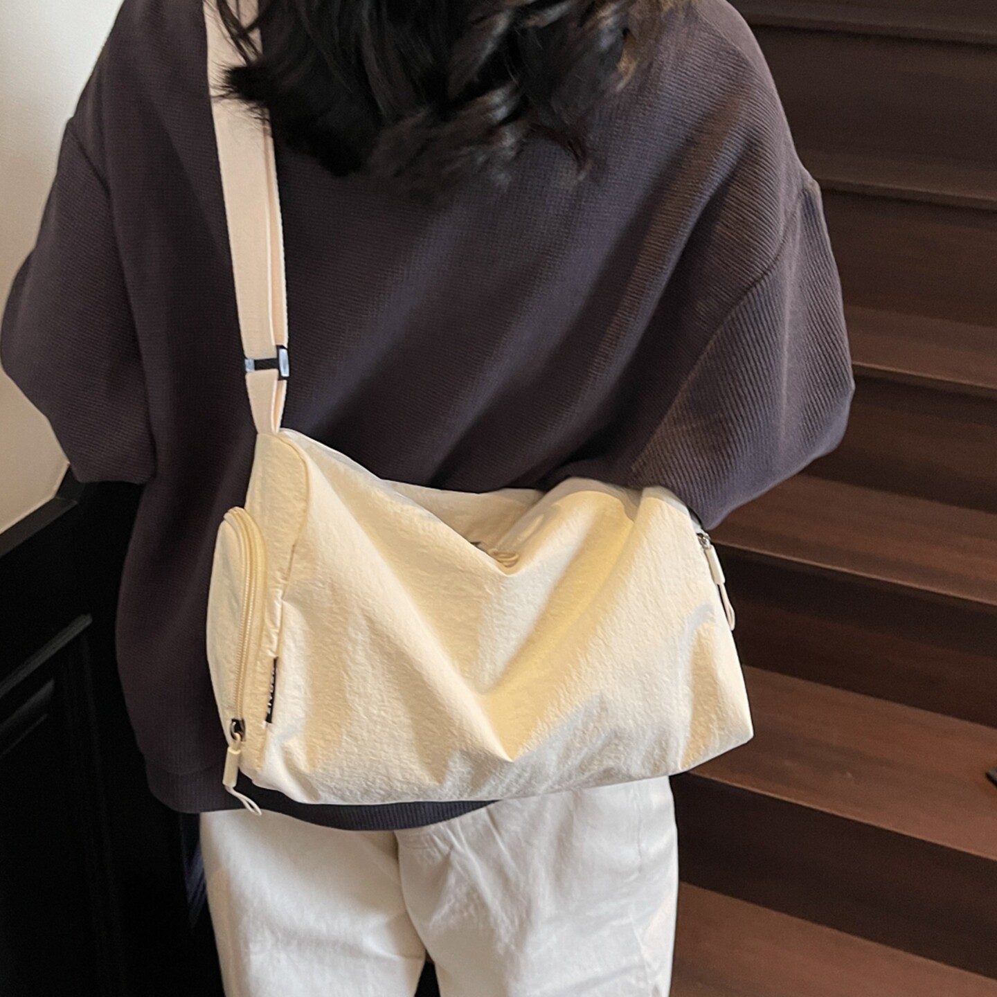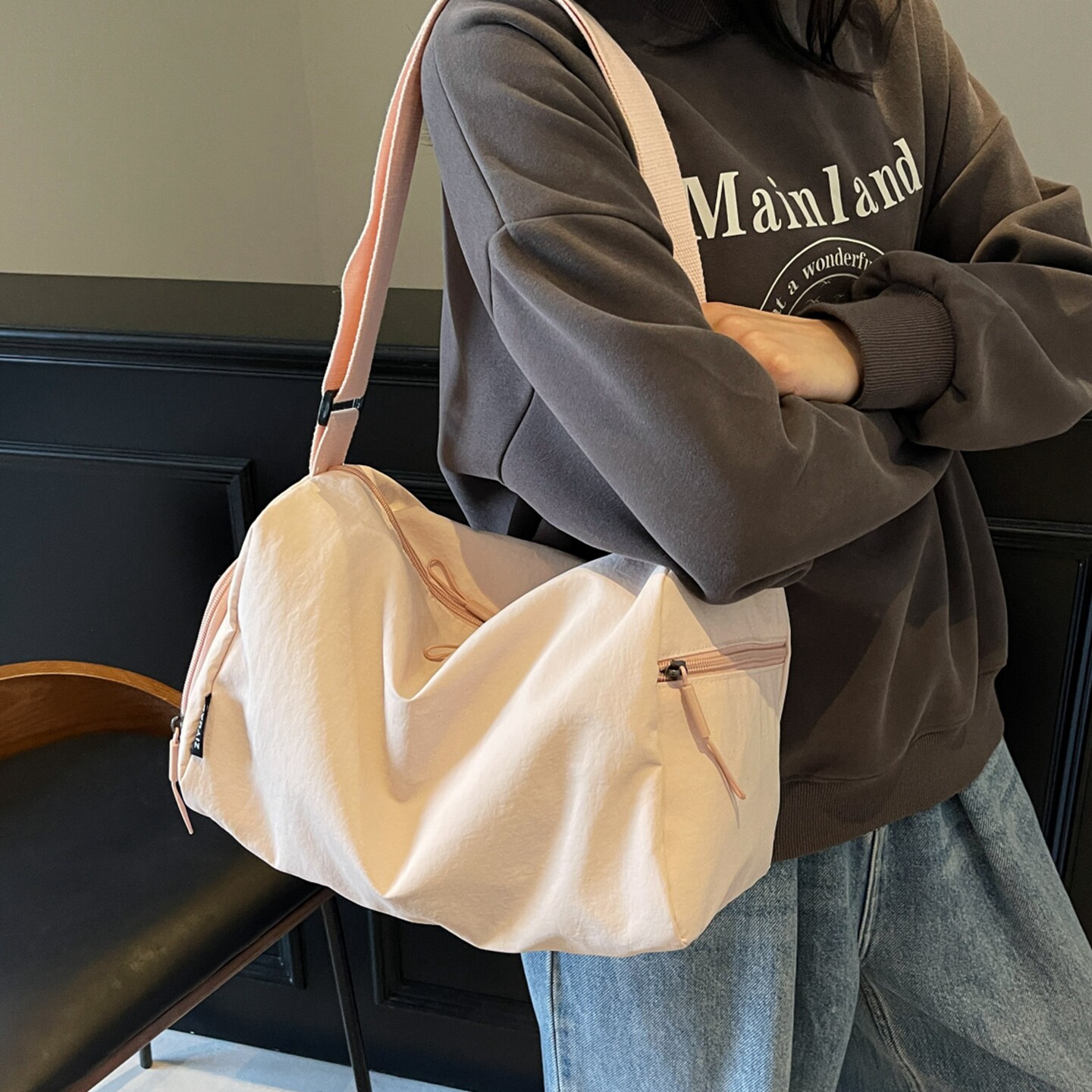 简约大容量尼龙帆布包包女夏季新款轻便斜挎枕头包运动瑜伽健身包